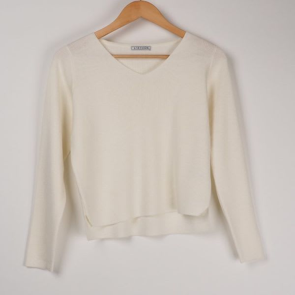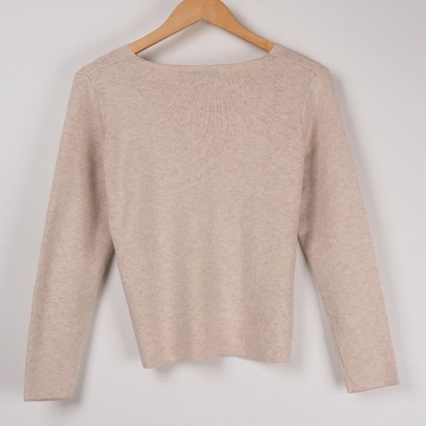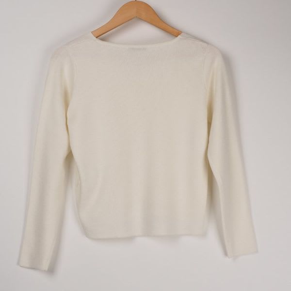 「かわいい襟ぐりもちょうどよいです。ニットは大きめになってしまうことが多いので、ぴったりサイズで着ていて気持ちが良かったです。白系が似合わないので、ニットは黒ばかりでしたが、すごく似合って新しい発見!持っているデニムや、スカートにも合わせやすかったです」