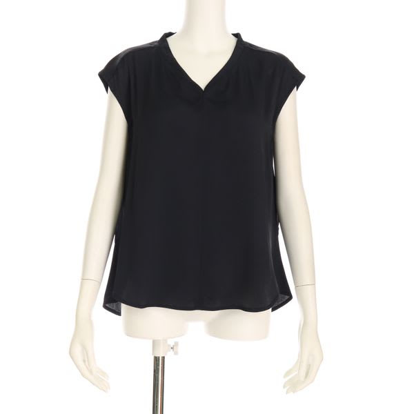 Vネックラインや落ち感のある素材が女性らしいブラウス。