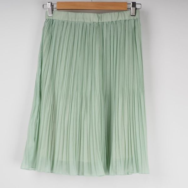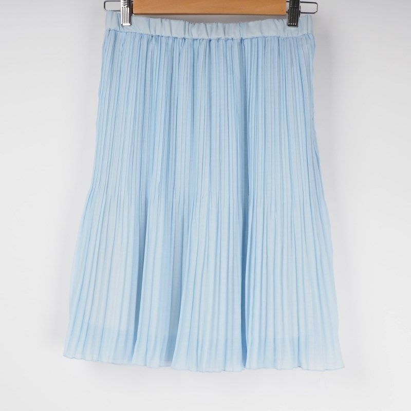 爽やかなプリーツスカートは1枚でコーディネートの主役になる1枚。短すぎず、長すぎない丈感が良いですね♪
