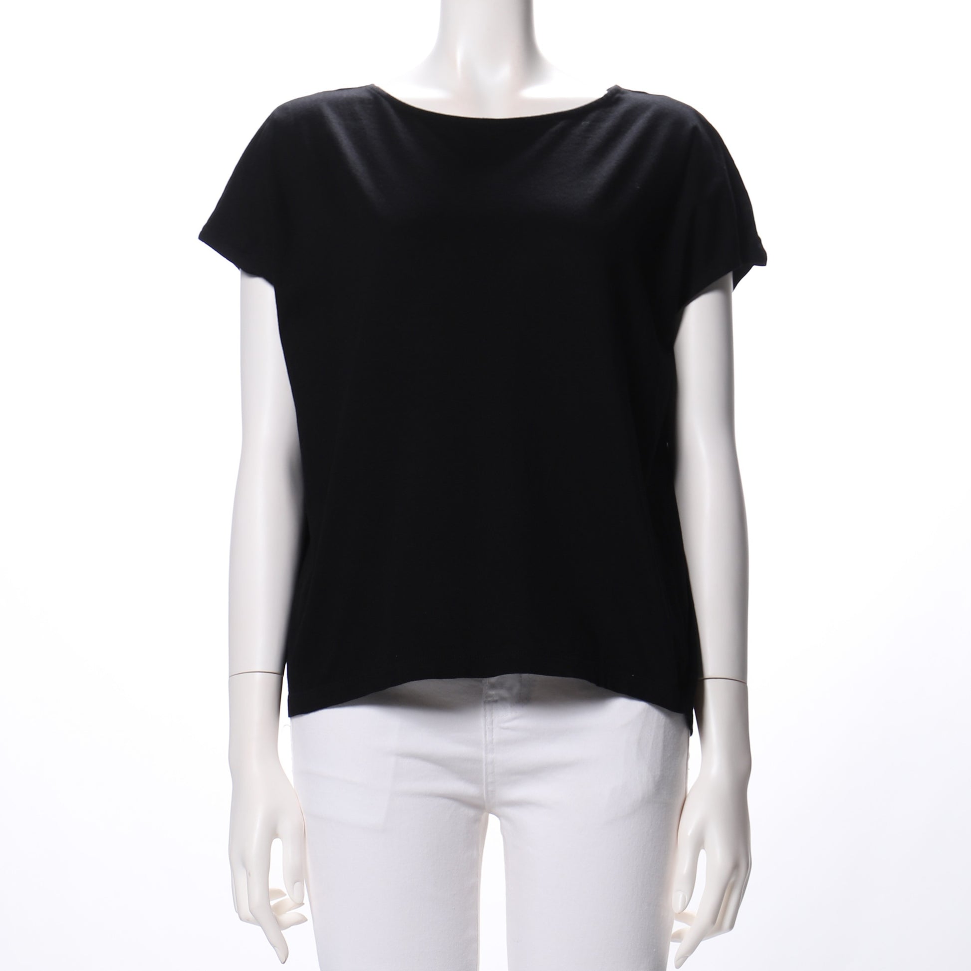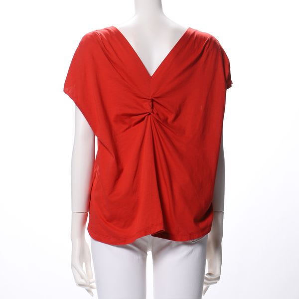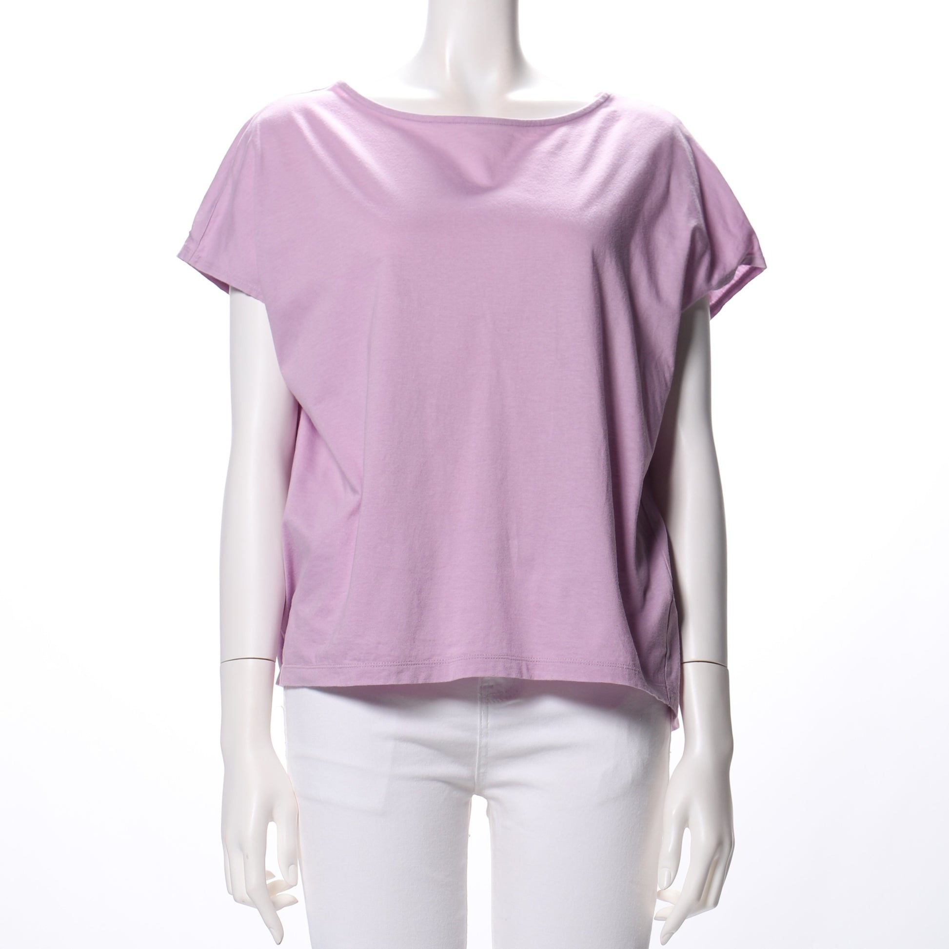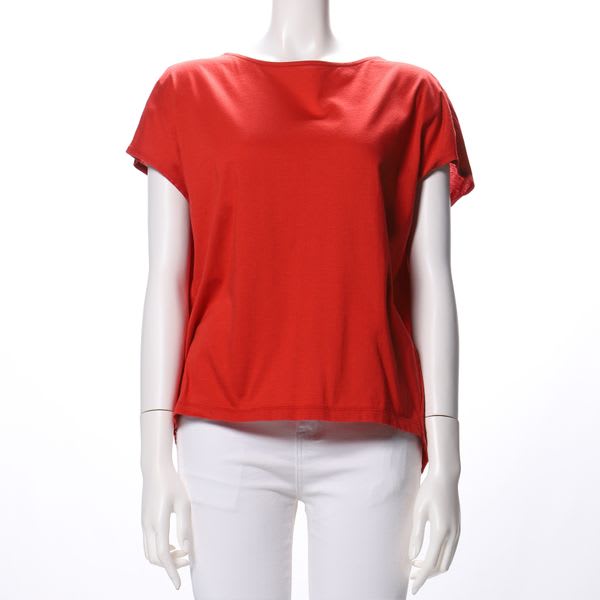 フレンチスリーブの綿100%カットソー。前後2WAYで着ていただけます♪ねじったようなデザインは、一枚で着こなしのポイントに! 暑さが気になる時期から秋口まで、カーディガンも羽織りやすいので季節の変わり目に重宝しますね! テーパードパンツに合わせてオフィスカジュアルに、デニムに合わせて普段使いに活躍しますよ!
