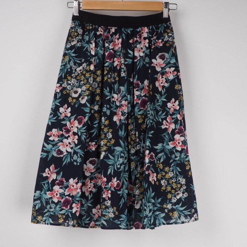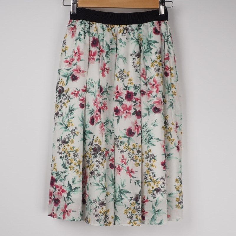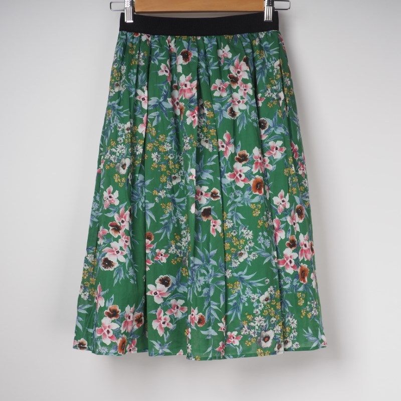 「手持ちのトップスは無地のものが多いので、柄のあるスカートがとても着回しできました。ウエストが少し小さめのゴムになっていたので、私がよくあるヒップはちょうどいいけどウエストが大きいという事もなく本当に着やすかったです。カラーが白だったら購入したかもしれないくらい気に入りました。」