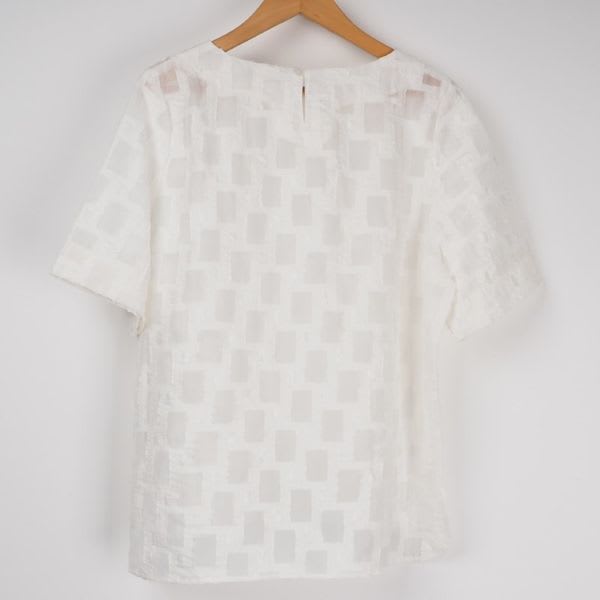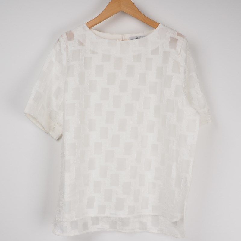 ストレートなシルエットのブラウスは、ちょうどいい透け感が女性らしい印象に。フレアスカートやタイトスカートを合わせて上品に、デニムパンツを合わせてキレイめカジュアルに良さそうですね。