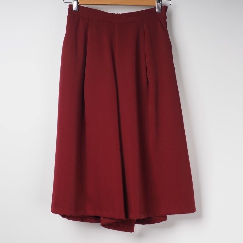 後ろウエストゴムのフレアパンツは、スカートのように見え女性らしい印象になりますね。ブラウスをインして合わせエレガントに、Tシャツを合わせカジュアルダウンしても◎
