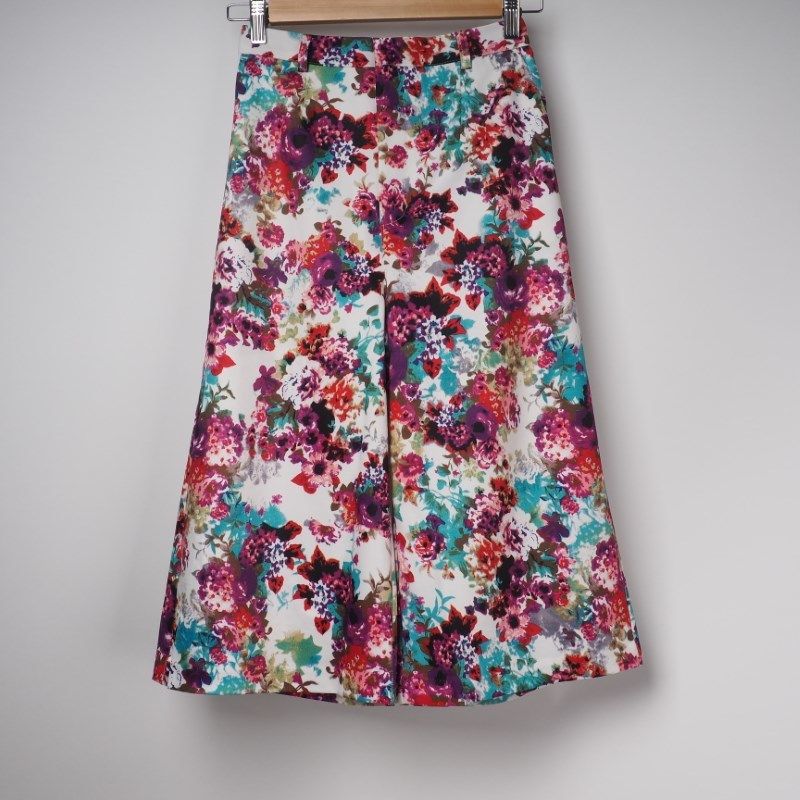 合繊花柄ワイドパンツ