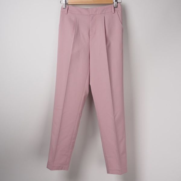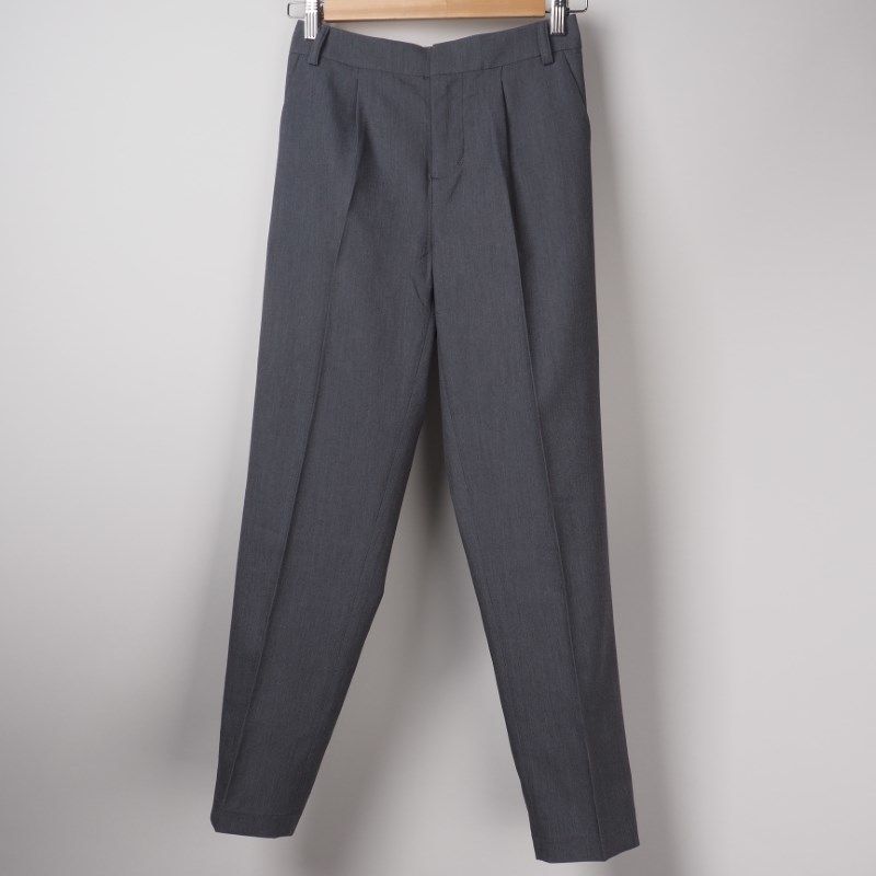 センタープレスが入ったテーパードパンツは、後ろウエストゴムで楽に着られる一枚ですね。とろみブラウスを合わせて甘辛MIXスタイルに、襟付きシャツを合わせてかっちりスタイルもおすすめです。