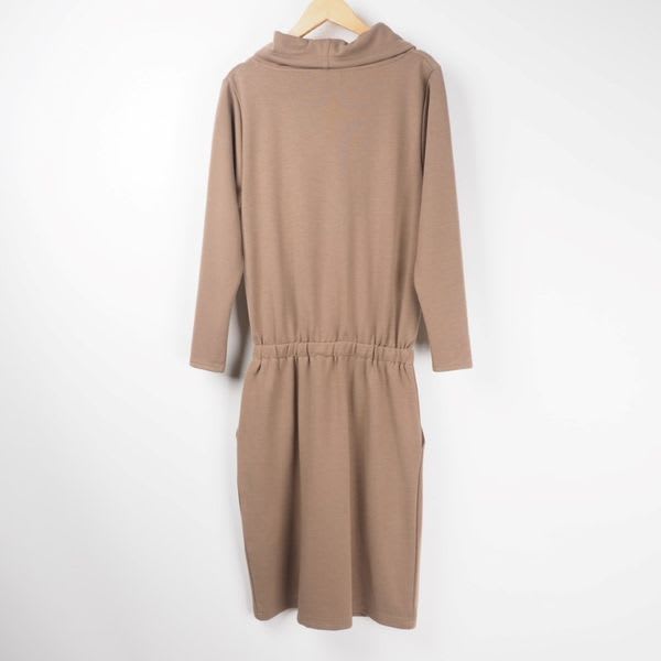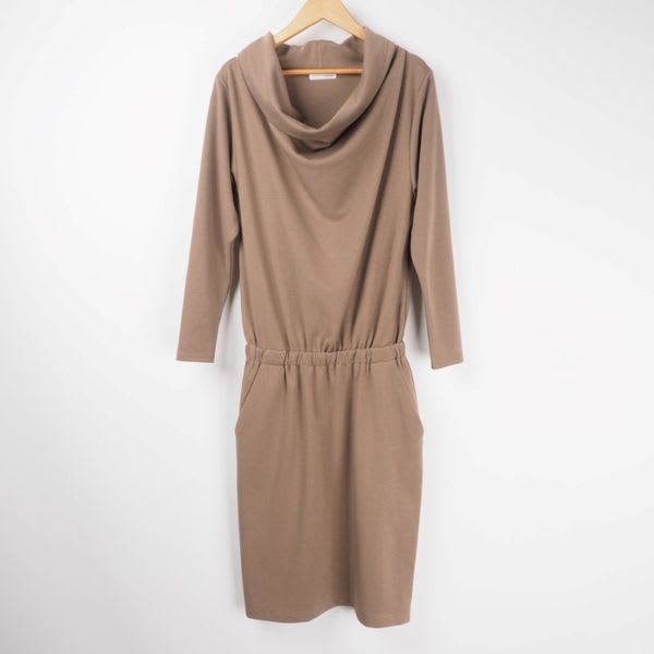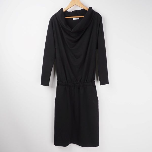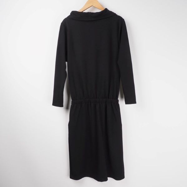 胸元のドレープが美しいワンピース。タイツを合わせてシックに仕上げても素敵ですね。華奢なアクセサリーを合わせて上品に、モードなアクセサリーを合わせて都会的に、色々なスタイルが楽しめます!