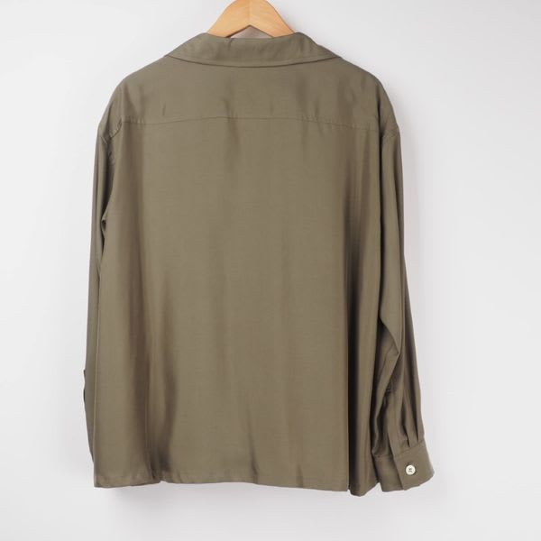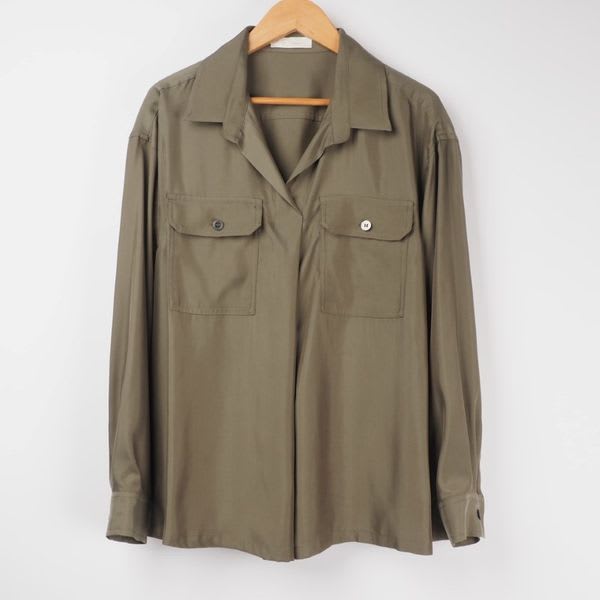 光沢のある素材感が上品なブラウスは、胸元のポケットやシャツ風の襟が適度にラフな印象を与えてくれるアイテムです。ストライプ柄のパンツを合わせてクールに、レーススカートを合わせて上品にと、色々なスタイルをお楽しみください!
