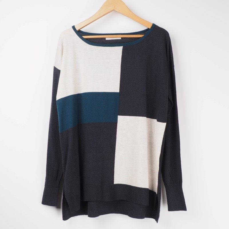 インターシャカラーブロッキングニット