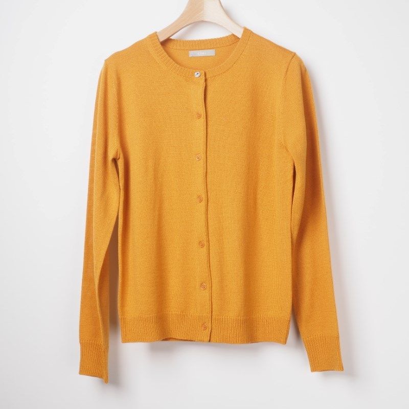 シンプルなニットカーディガンは、ボタンを締めてラウンドネックニット風に着こなしたり、肩にサラッと羽織ったりと色々な着こなしができますね。フレアスカートを合わせてフェミニンスタイルに、センタープレスパンツを合わせてキレイめオフィスカジュアルスタイルにと、色々なスタイルが完成します。