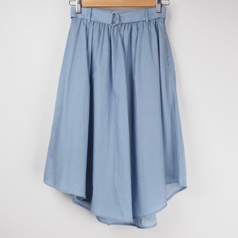「今の季節にぴったり生地で、レンタルしているトップスに合わせて着ました。スカートは少し大きかったですが、セットになっているベルトで止めることで調節がききよかったです。トップスを色々と変えるだけで違った雰囲気をだせて楽しめるので着まわしを楽しめました。」
