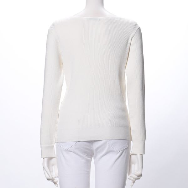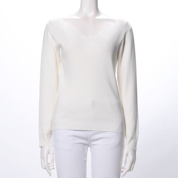Vネックの長袖ニット。ワイドパンツと合わせて大人カジュアルスタイルにしてみたり、アクセントとして首元にエックレスを加えてチュールスカートなどと合わせるのもおすすめですよ。