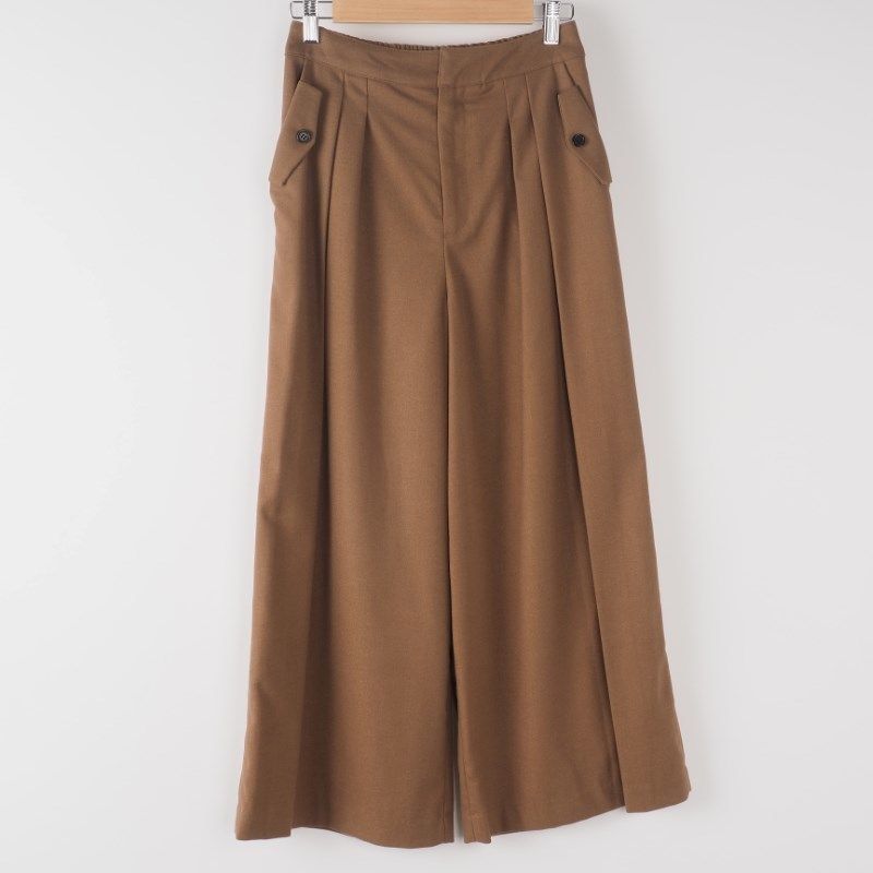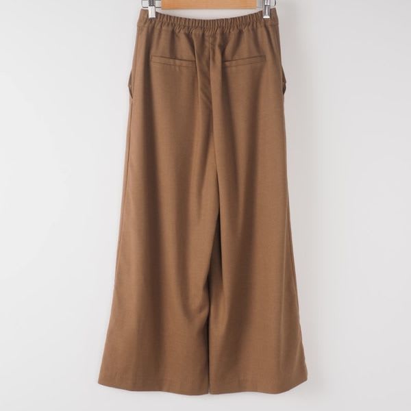 落ち感のあるタック入りワイドパンツ。ざっくりニットにフラットシューズを合わせてレディライクに、とろみ素材のブラウスにヒールパンプスを合わせてオフィススタイルにも!ウエストを出してポケットを見せてあげると可愛いですね♪