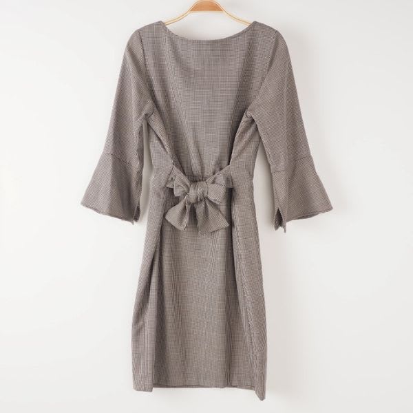 フレア袖とリボンベルトがレディライクなワンピースです♪ベルトは前後どちらでも結べます。一重に結んだり、リボン結びにしたりとでアレンジが楽しめますね。タイツにブーティで上品に、フラットシューズで気負わない雰囲気のスタイルも◎です!