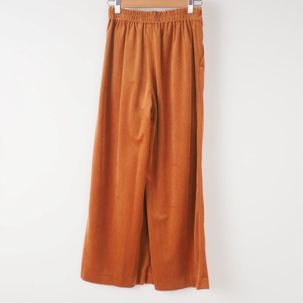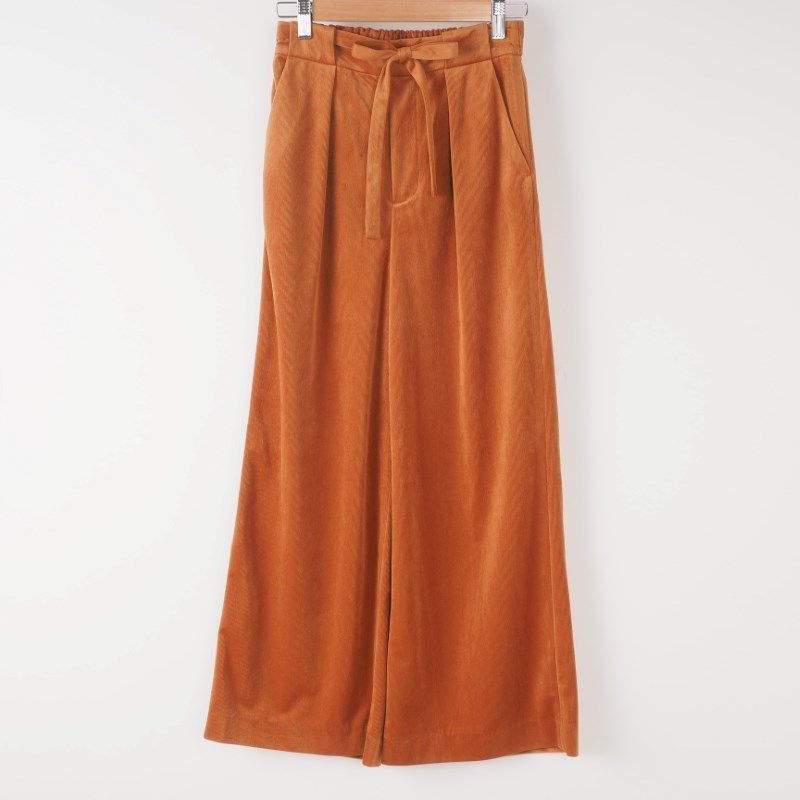 コーデュロイ素材ワイドパンツリボンベルトデザイン