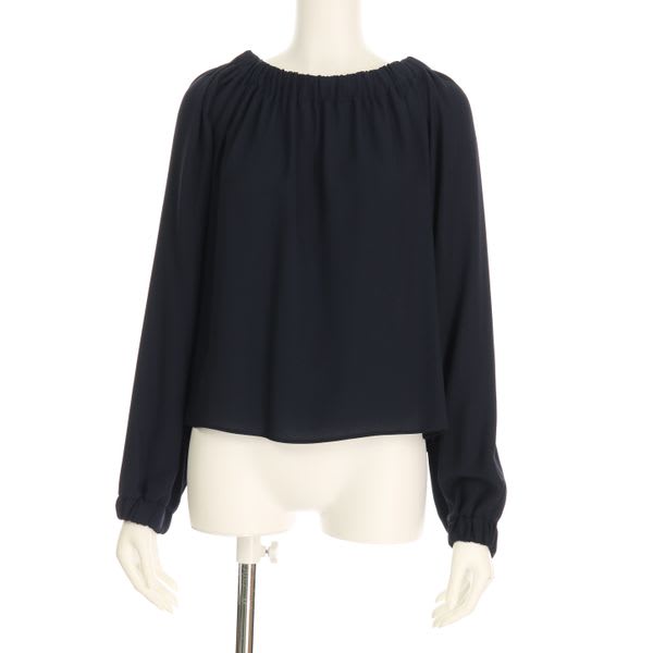 前後にたっぷりギャザーが入った落ち感のあるブラウス。首周りがすっきりして女性らしい印象ですね。フレアスカートにベルトを合わせてエレガントなスタイルに、スッキリとしたテーパードパンツと合わせて甘辛ミックスコーデもオススメ。