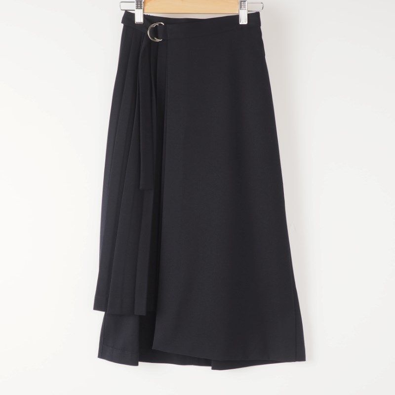 プリーツがポイントのベルト付きフレアスカート。タートルネックニットを合わせてシックで落ち着いたスタイルに仕上げたり、とろみブラウスを合わせて上品なエレガントスタイルに仕上げたりと、色々なスタイルが完成しますね。