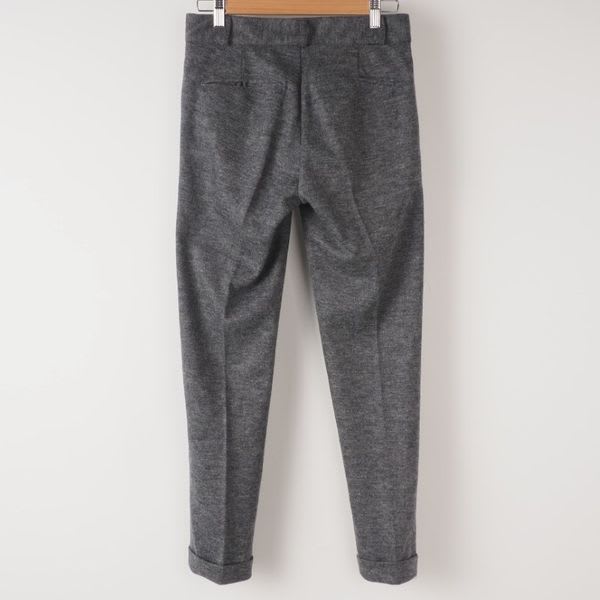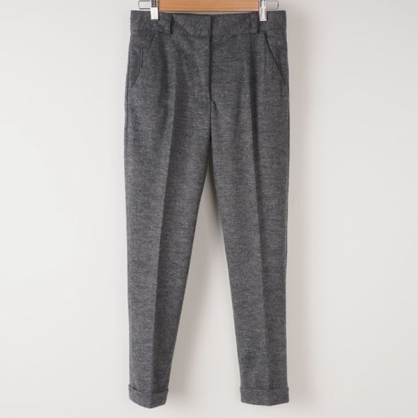 センタープレスのテーパードパンツ。ハイゲージニットにヒールパンプスを合わせてスッキリとしたオフィスカジュアルに、ざっくりニットにスニーカーを合わせて休日のリラックスしたスタイルにもいいですね!