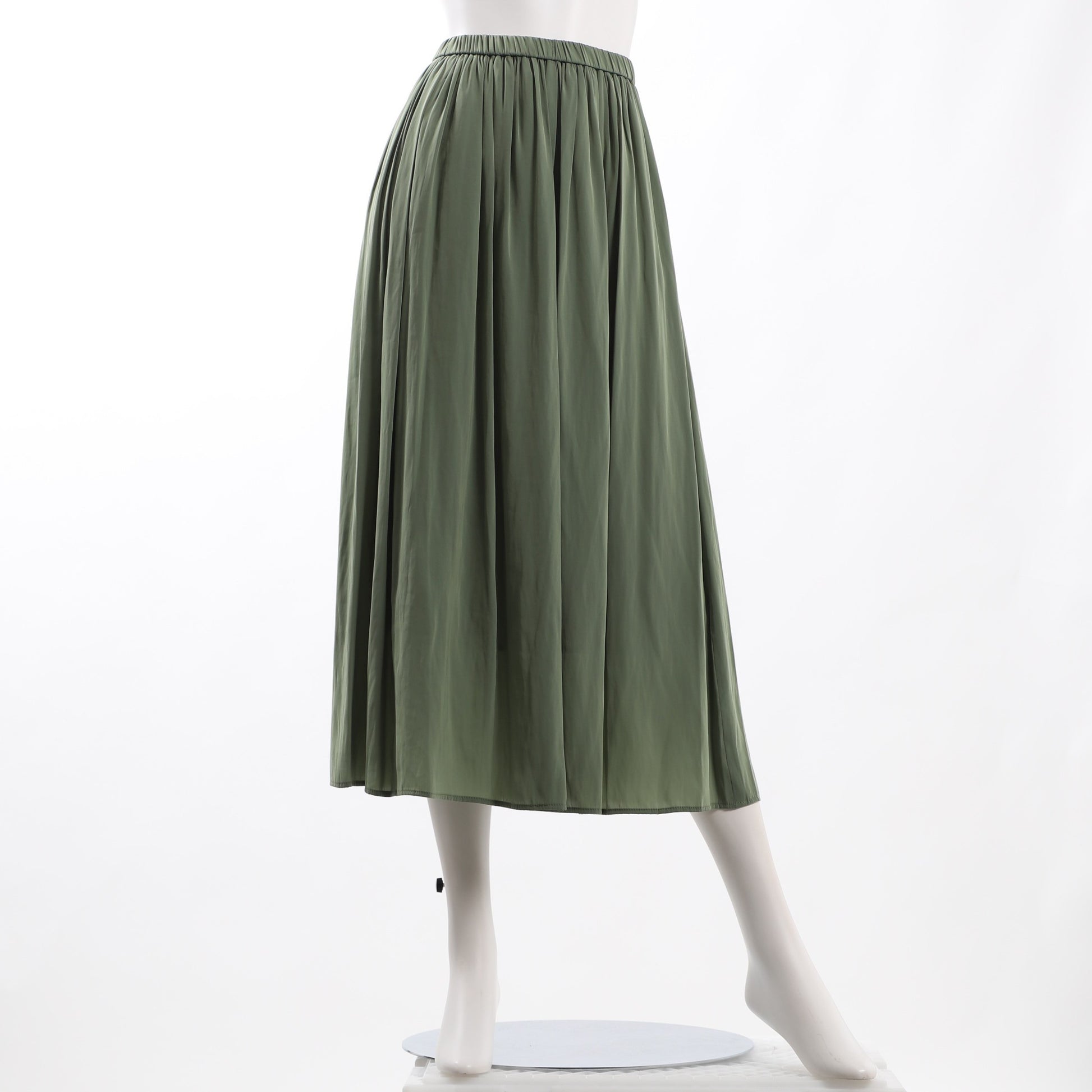 タックが立体的なシルエットを作り出す上品なタイトスカート。リブニットを合わせてメリハリのあるレディライクなスタイルに仕上げたり、とろみ感のあるブラウスを合わせて洗練されたオフィススタイルに仕上げたりと、色々なスタイルをお楽しみくださいね。