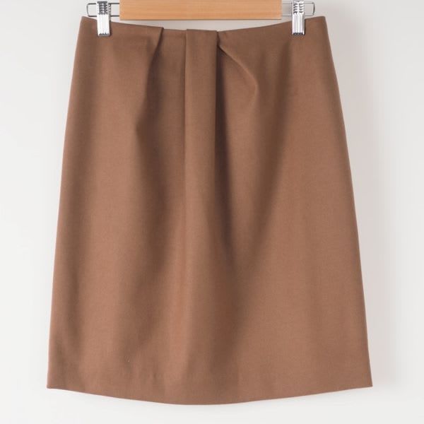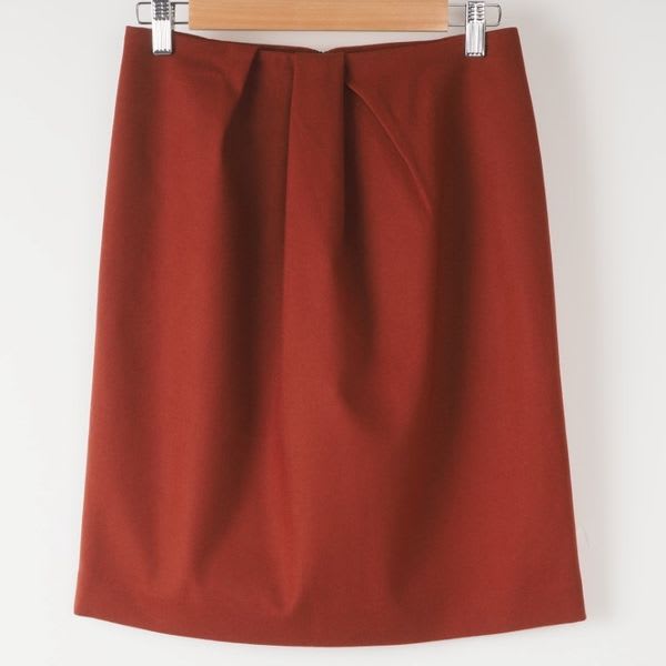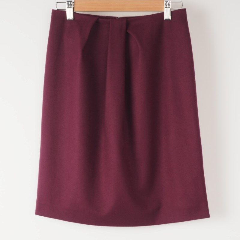 「タイトスカートの形が好きです。あまり着たことのない色合いですが、はいてみるとしっくりきました。」