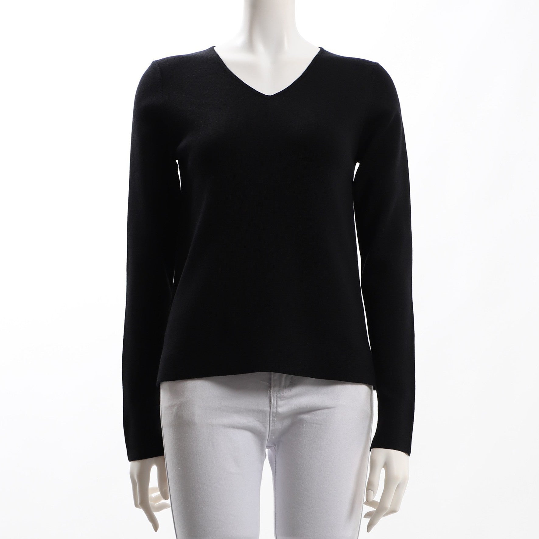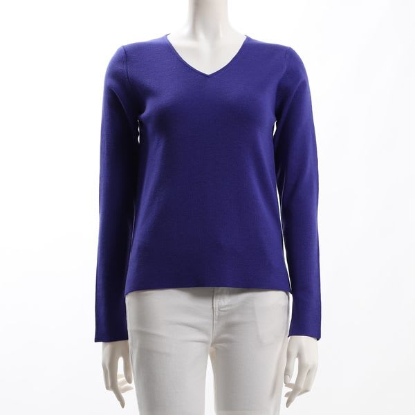 袖口のリブがポイントのVネックニットは、デコルテラインを綺麗に見せてくれますね♪デニムを合わせて大人カジュアルに、スカートを合わせて上品なフェミニンスタイルも◎です。