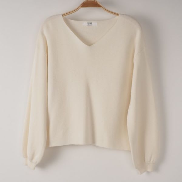 Vネックボリューム袖ニット