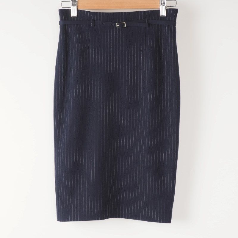 付属ベルトが取り外し可能なストライプ柄スカート。シャツを合わせてきちんと感のあるスタイルに、ハイゲージニットを合わせて上品なスタイルもいいですね!