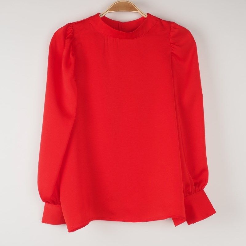 程よく詰まった襟元と、肩部分のギャザーデザインが上品な印象のトップス。バック部分の開きが気になるようでしたら、ベーシックカラーのキャミソールやベアトップなどを合わせて頂くと安心ですね。ワイドパンツを合わせてラフな雰囲気に、スカートを合わせてエレガントな着こなしもいいですね。