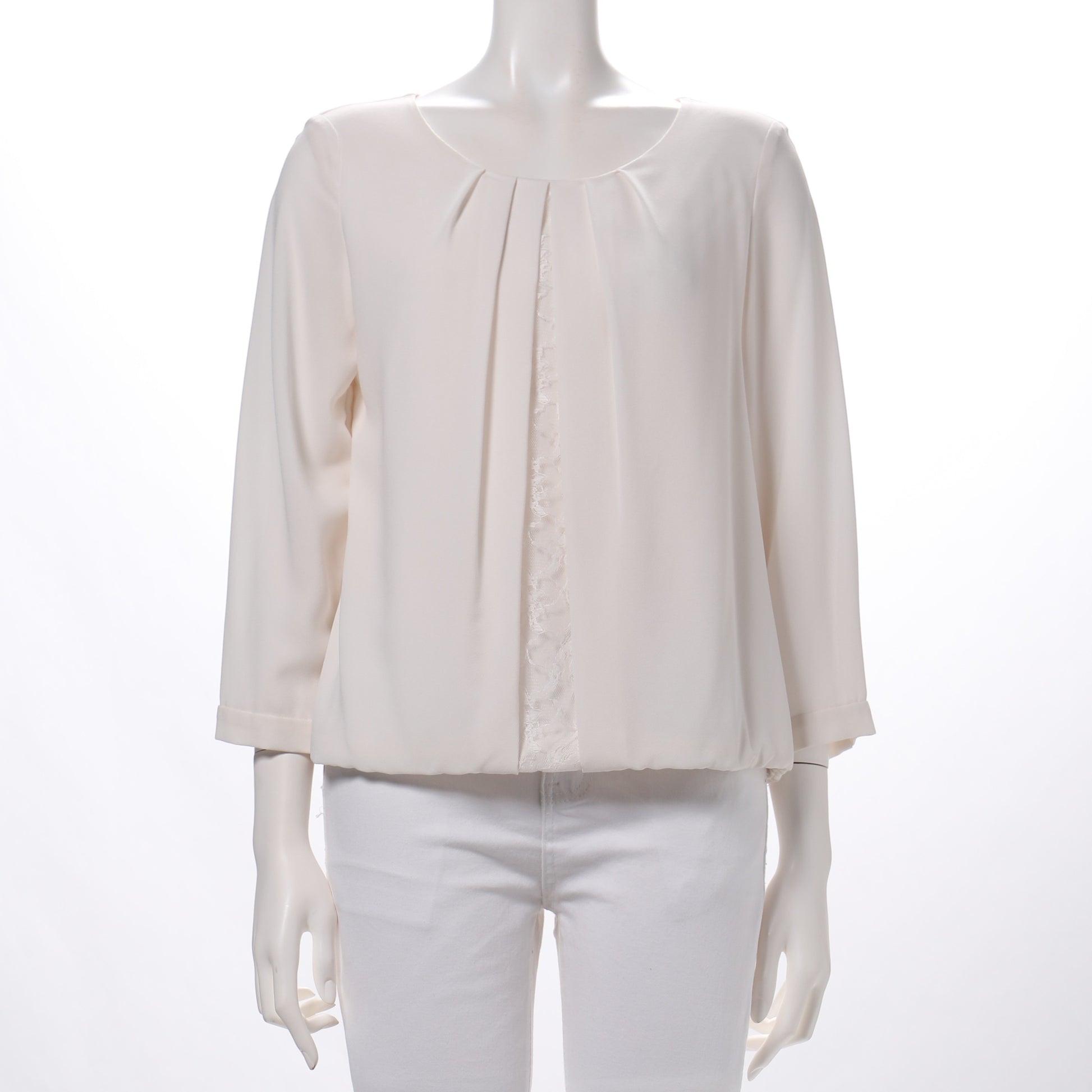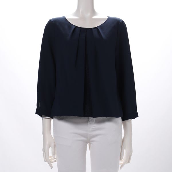 フロントのタックデザインから覗くレースが女性らしいブラウス。 フレアスカートを合わせてジャケットを羽織ってオフィススタイルに。 スリムパンツを合わせ、ロングネックレスを添えてキレイめ大人カジュアルスタイルに。