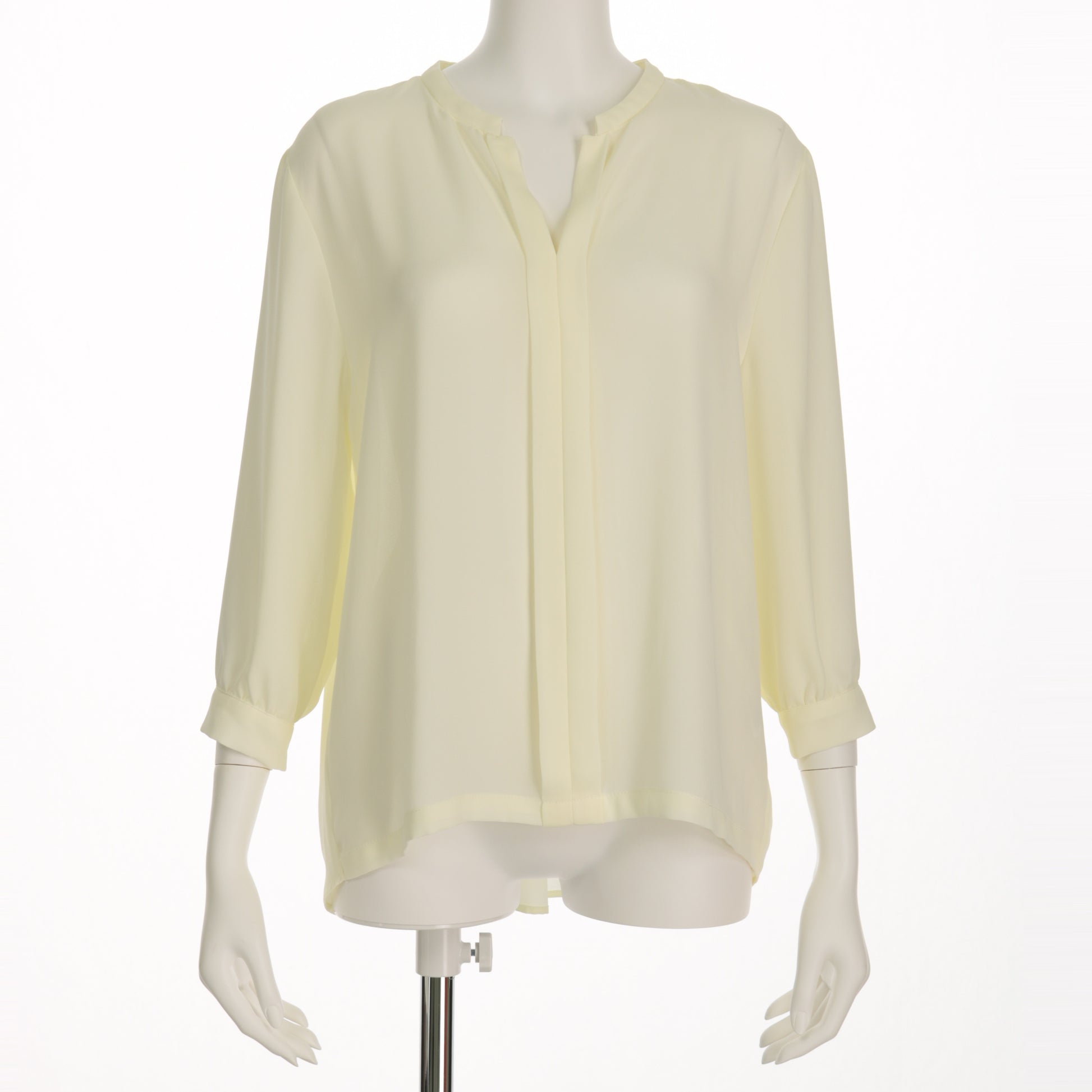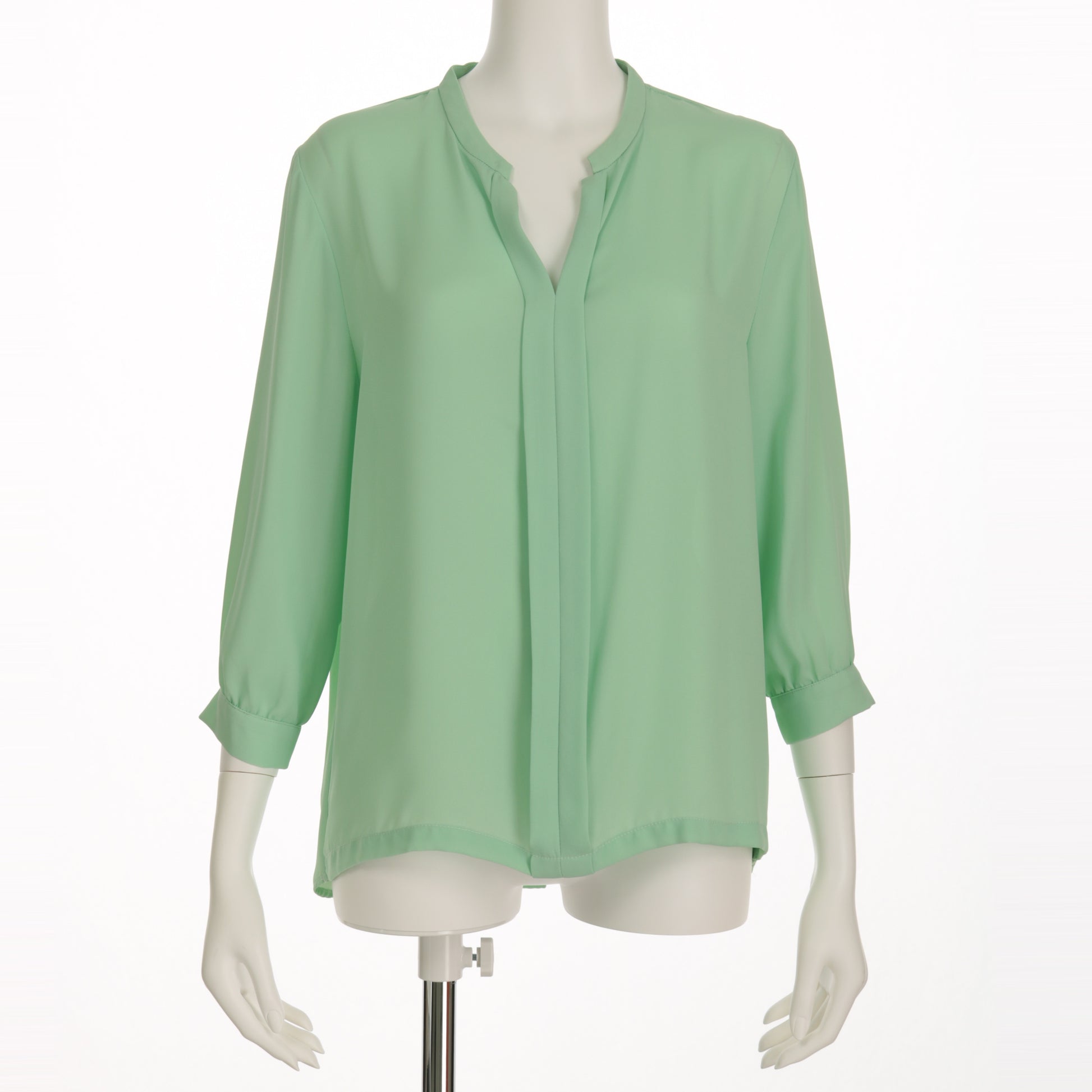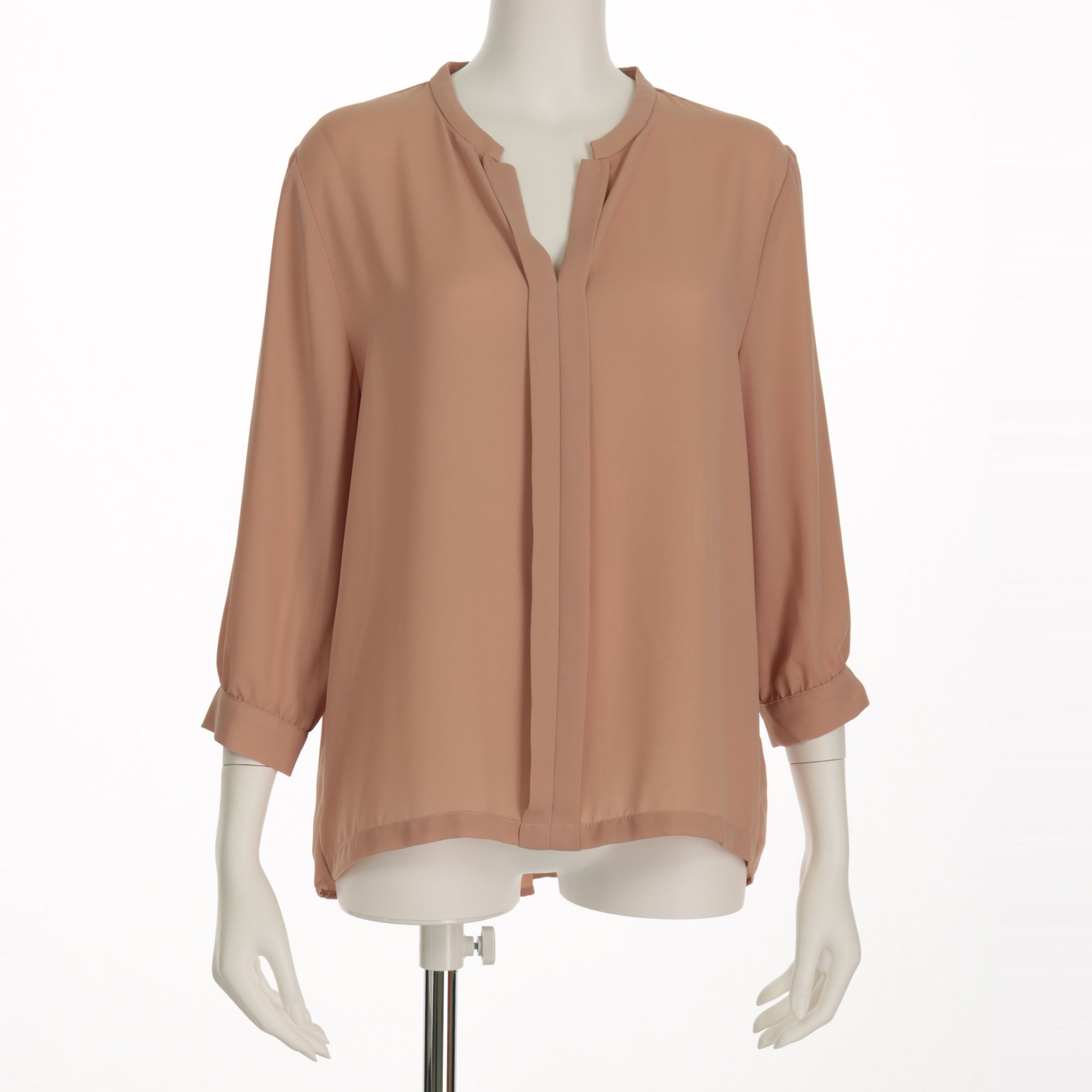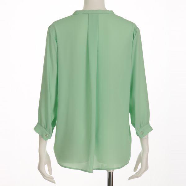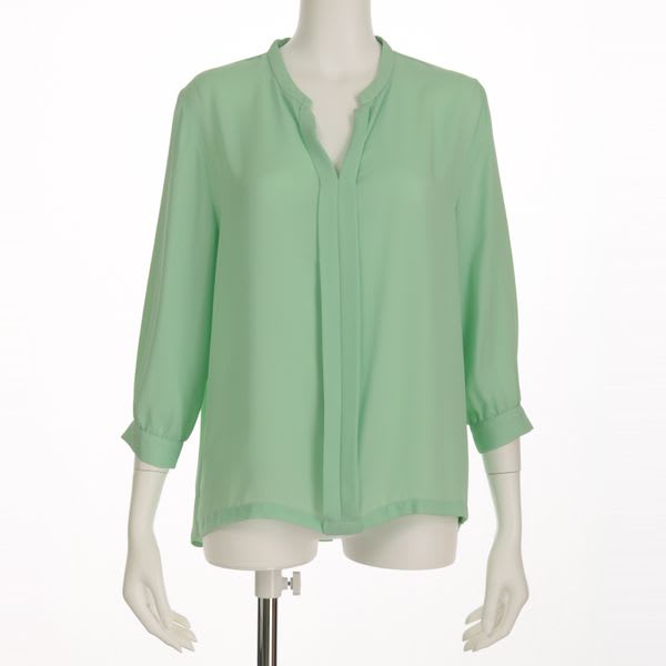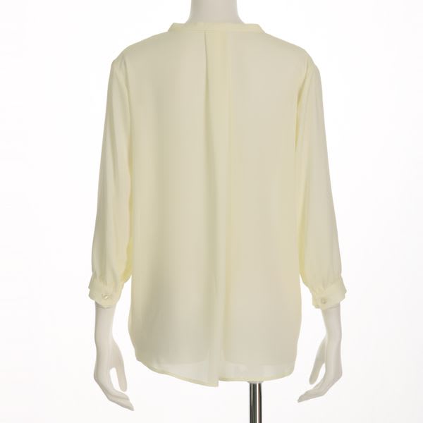オープンフロントネックのブラウス。テーパードパンツに合わせてきれいめスタイルに、フレアスカートでフェミニンなスタイルも素敵ですね。