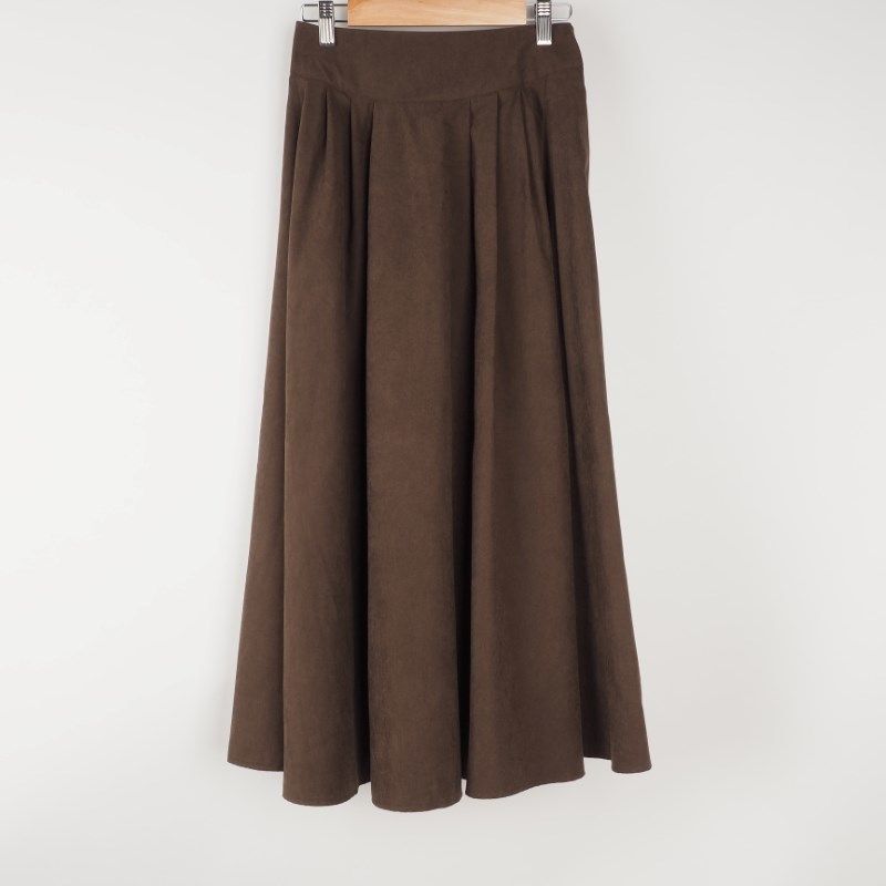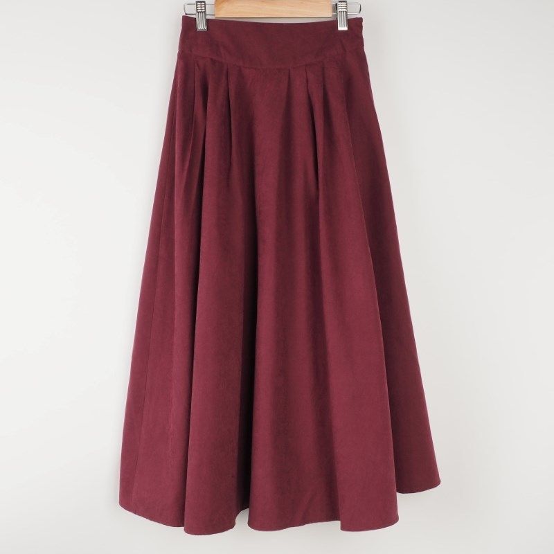 長め丈のフレアスカートはフェミニンなアイテム。ふんわり袖のニットを合わせて優しい印象に、タートルネックのリブニットを合わせてスッキリとしたシルエットも良いですね!