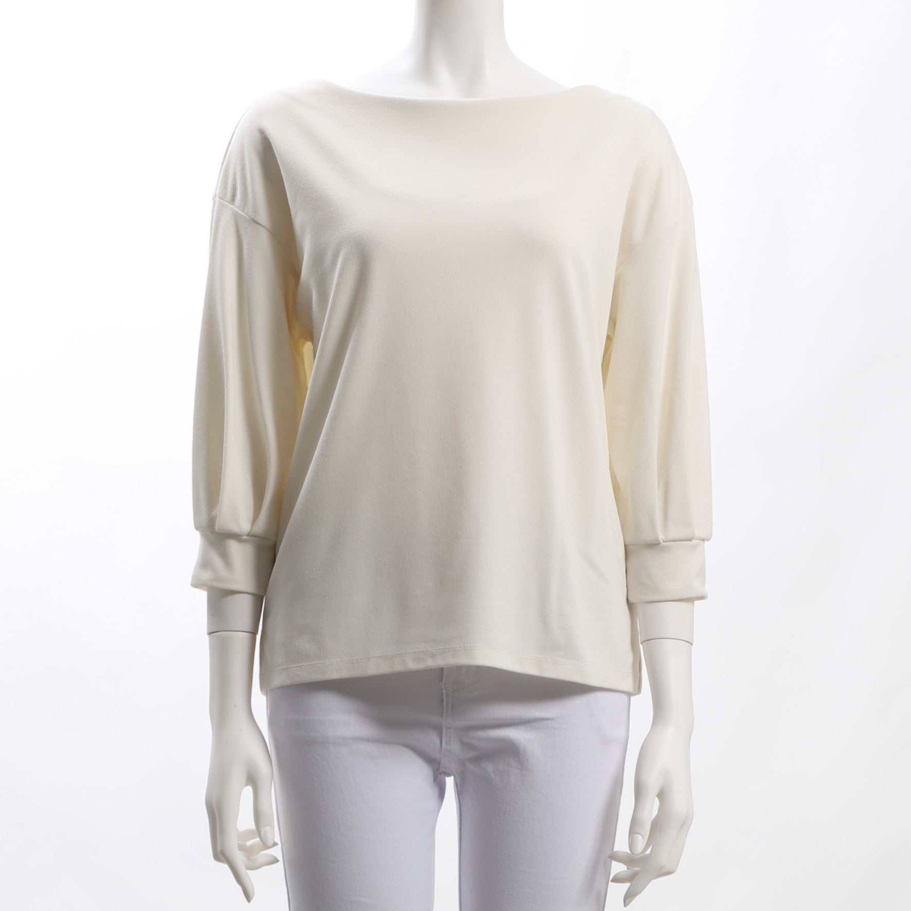 ほどよくふんわりとした袖が上品なカットソー。フレアスカートに合わせてレディライクに、テーパードパンツでかっちりオフィススタイルにも。