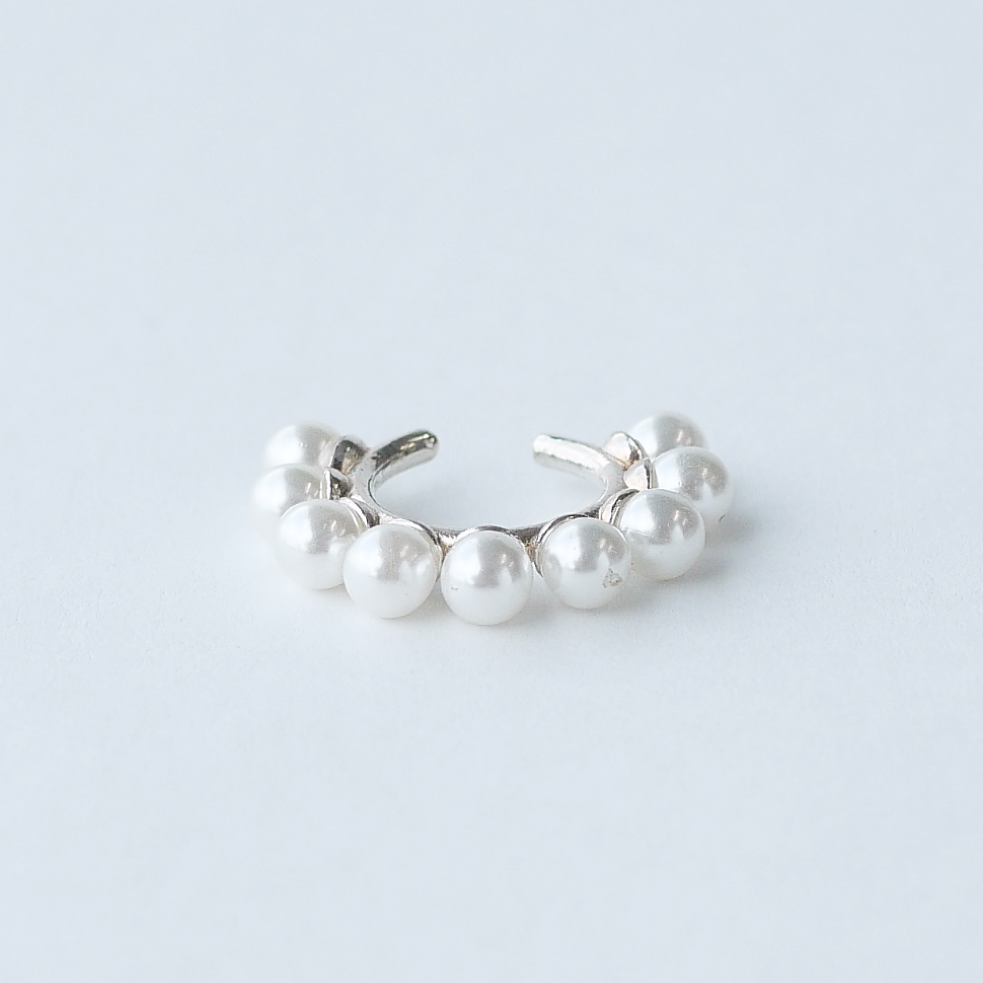 全体的にパールを並べ、着用すればどの角度から見てもパールをまとった華やかなシルエット。