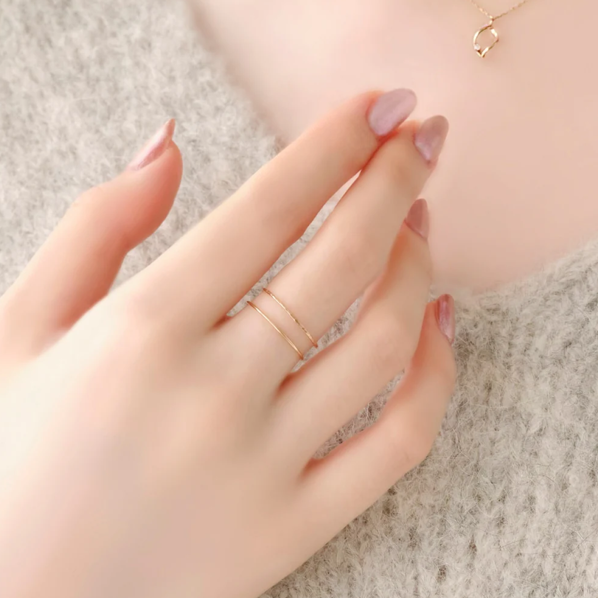 【2本のラインを重ねたK10リング&イヤーカフ】