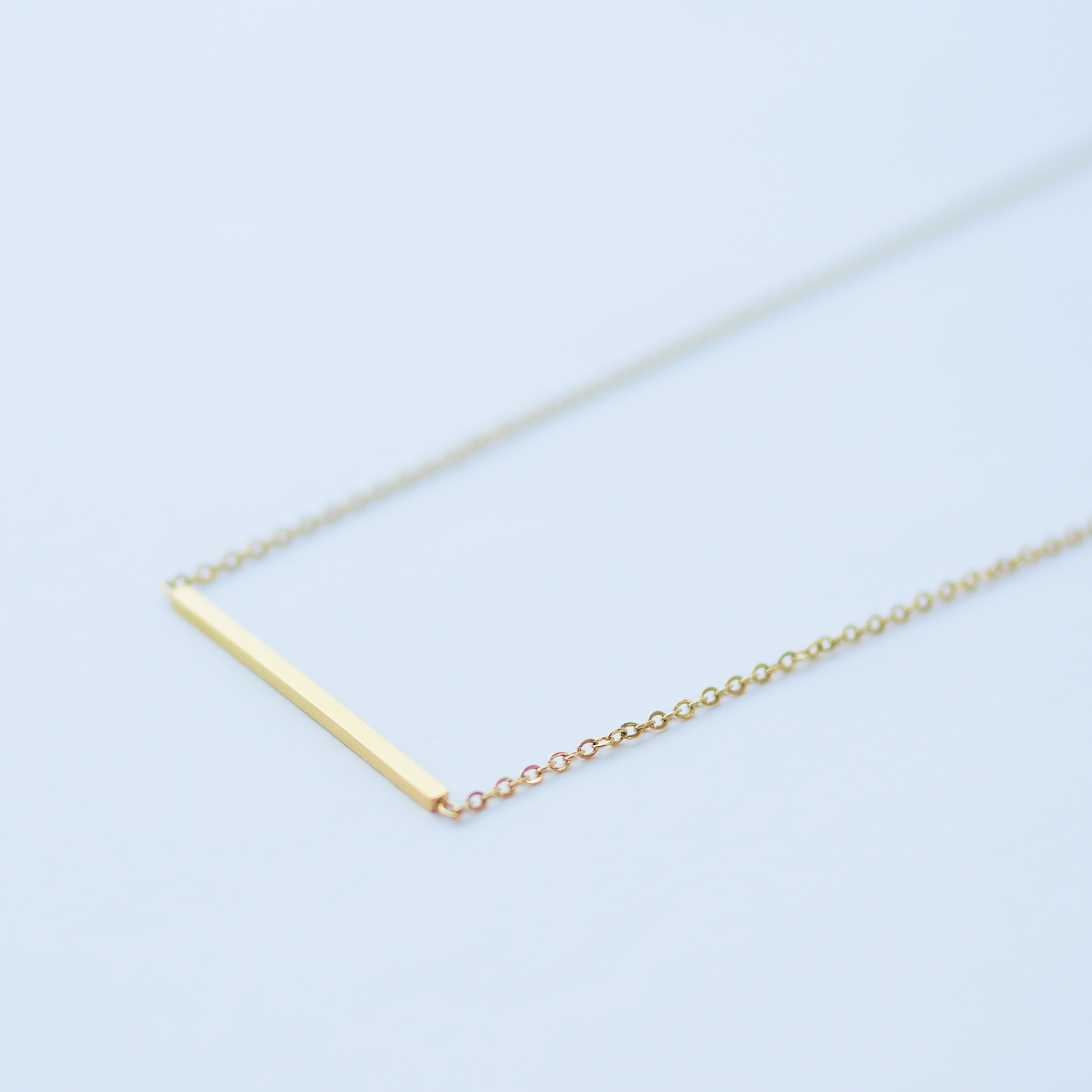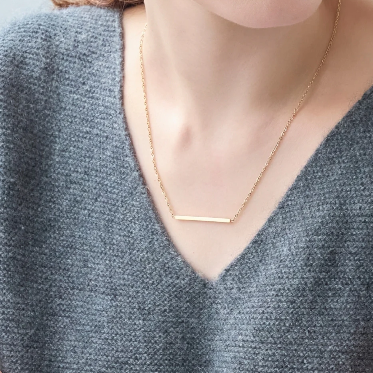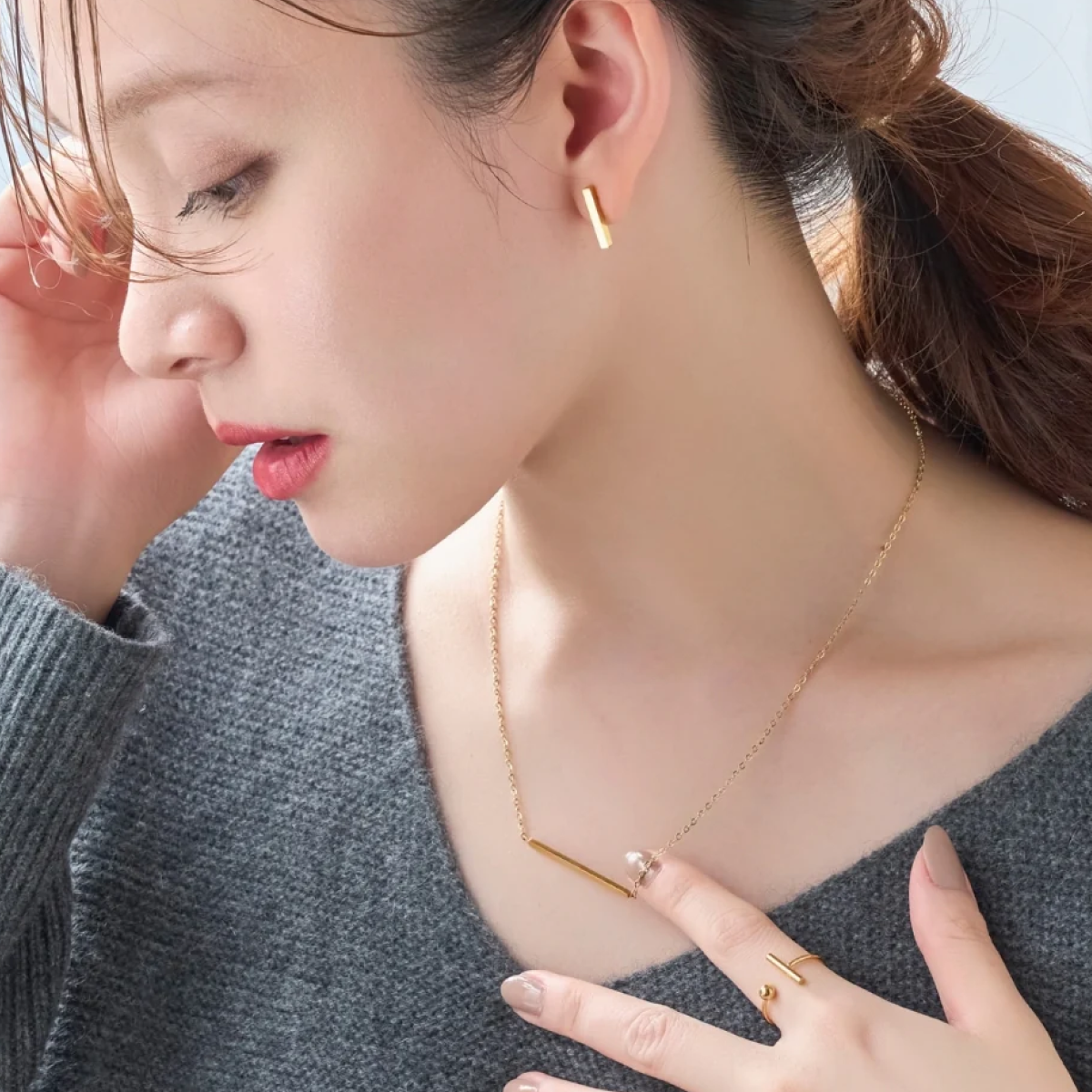 【デコルテにストレートなラインが煌めきを添えるネックレス】