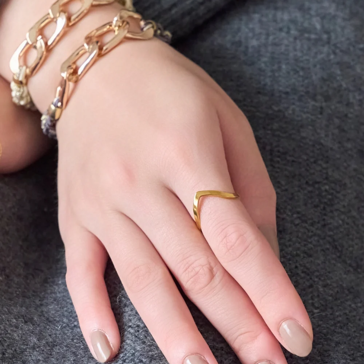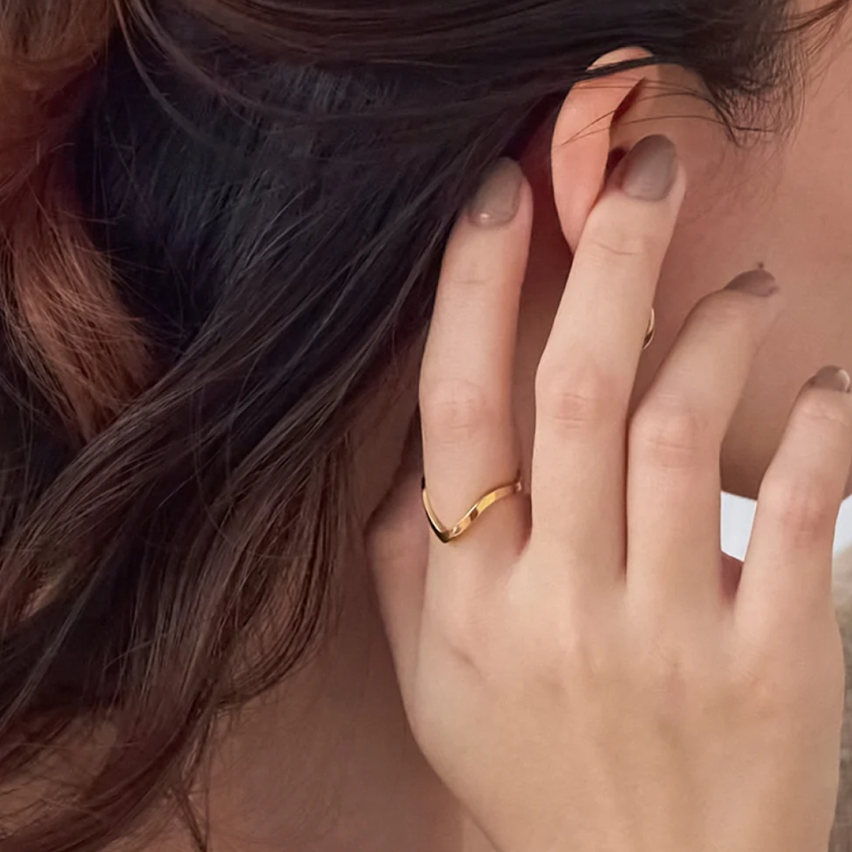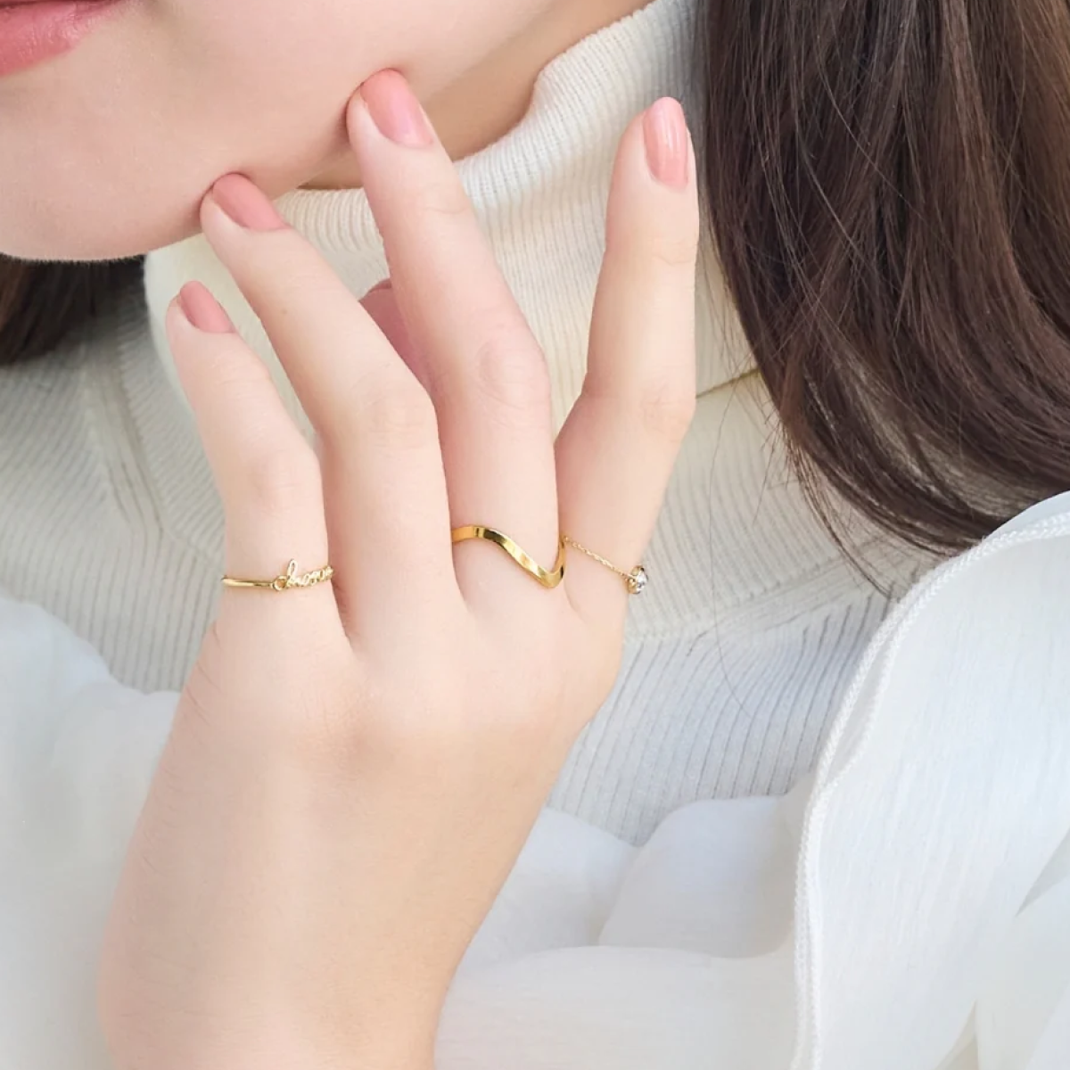 ベーシックにお使いいただけるよう、細身のアームに仕上げているので、お手持ちのリングとのレイヤードにも活躍します。