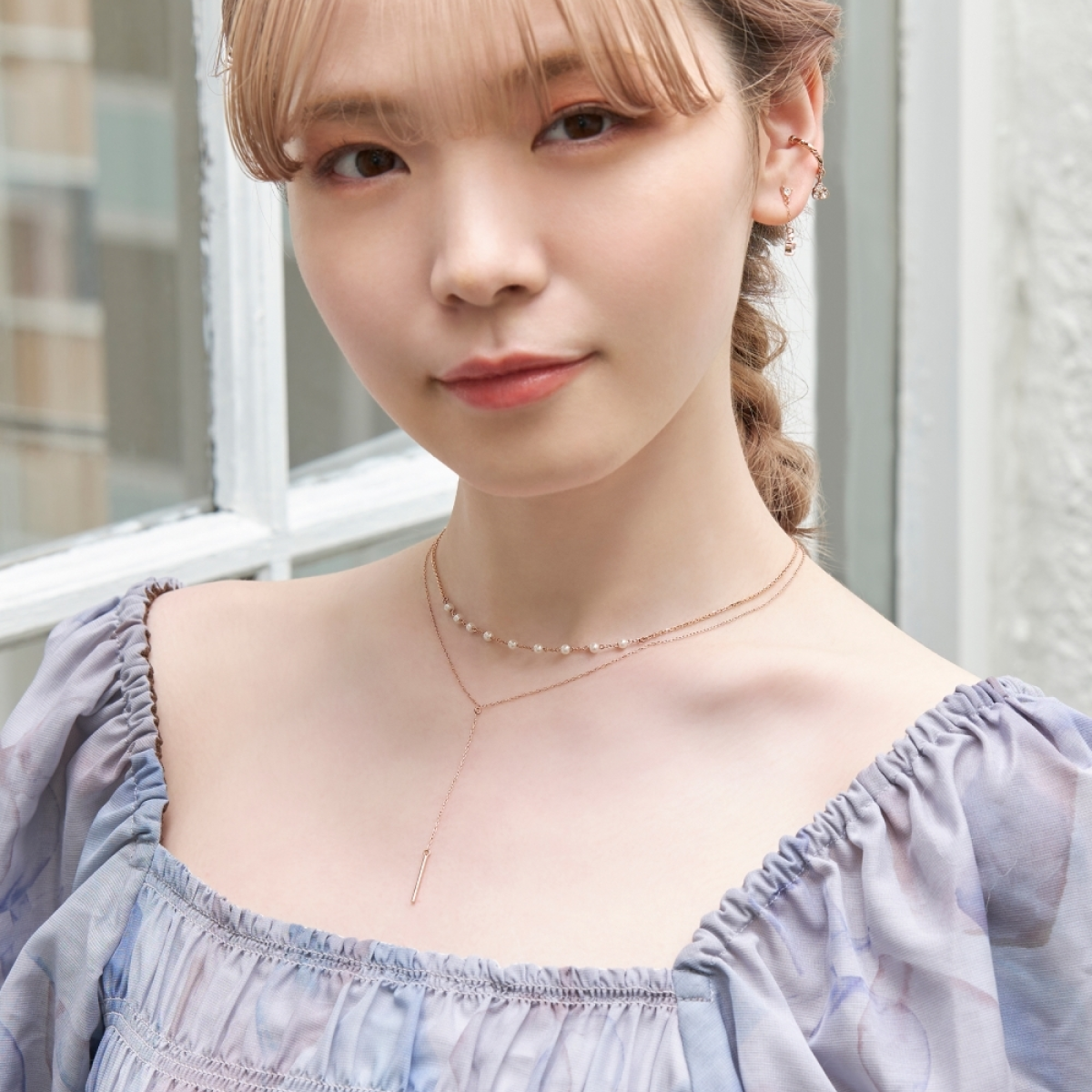 ステーション状に配した小粒パール×チェーンが凛としたムードと華やかな雰囲気を放つデザインです。