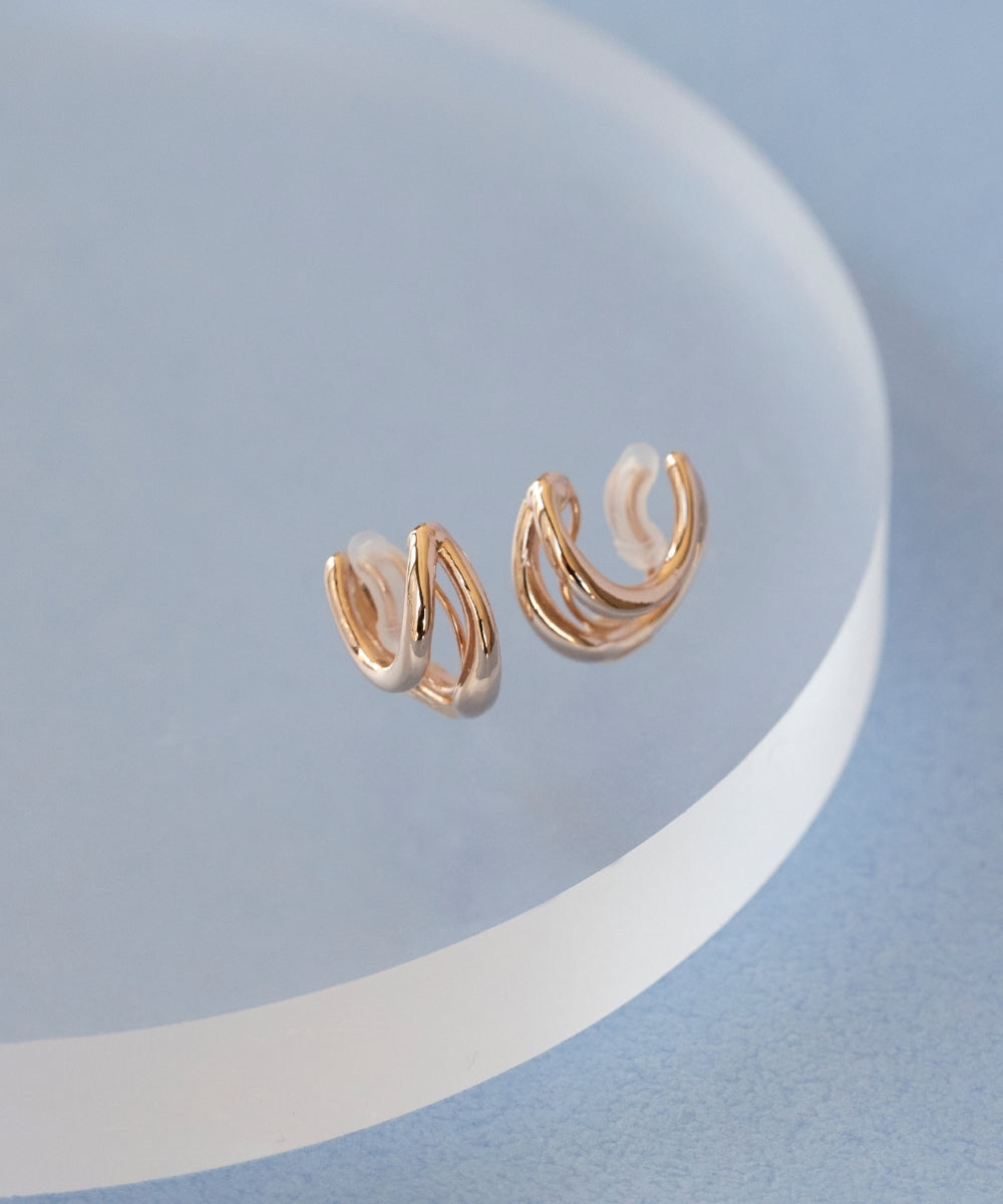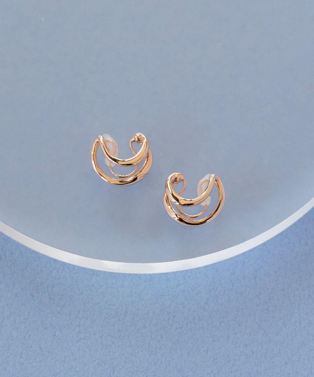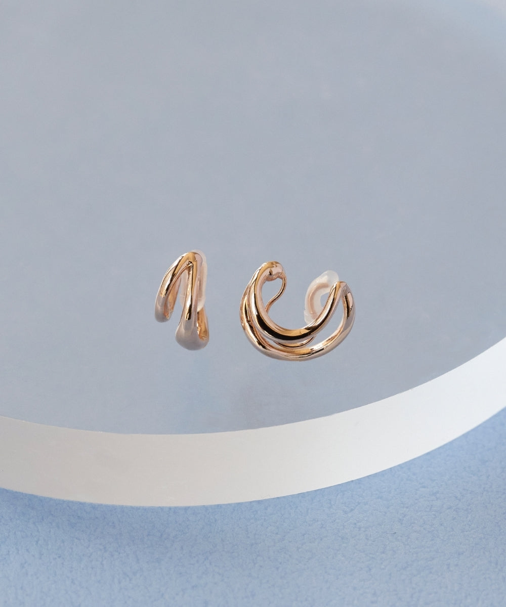 【フープをレイヤードしたようなルックスのニュアンスフープイヤリング】