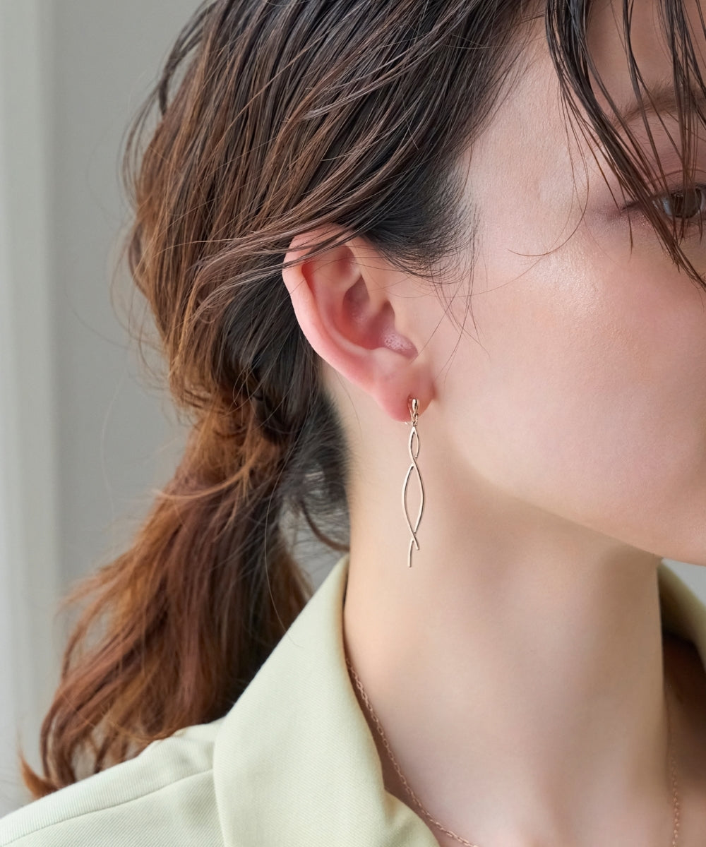 シンプルでスタイリッシュな印象の揺れるロングイヤリング。