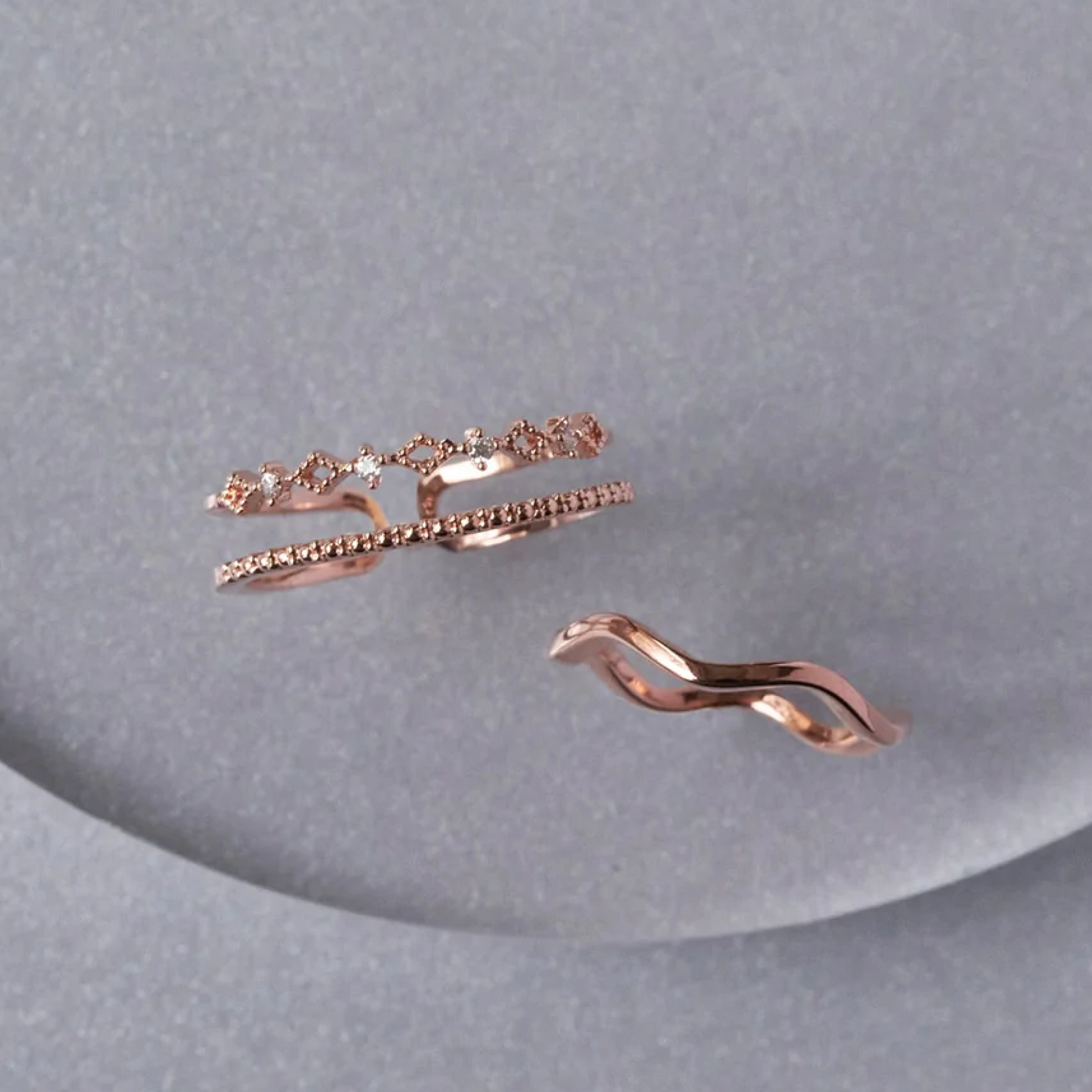 ワンセットで手元を上品にコーディネートするデザインセットリング。