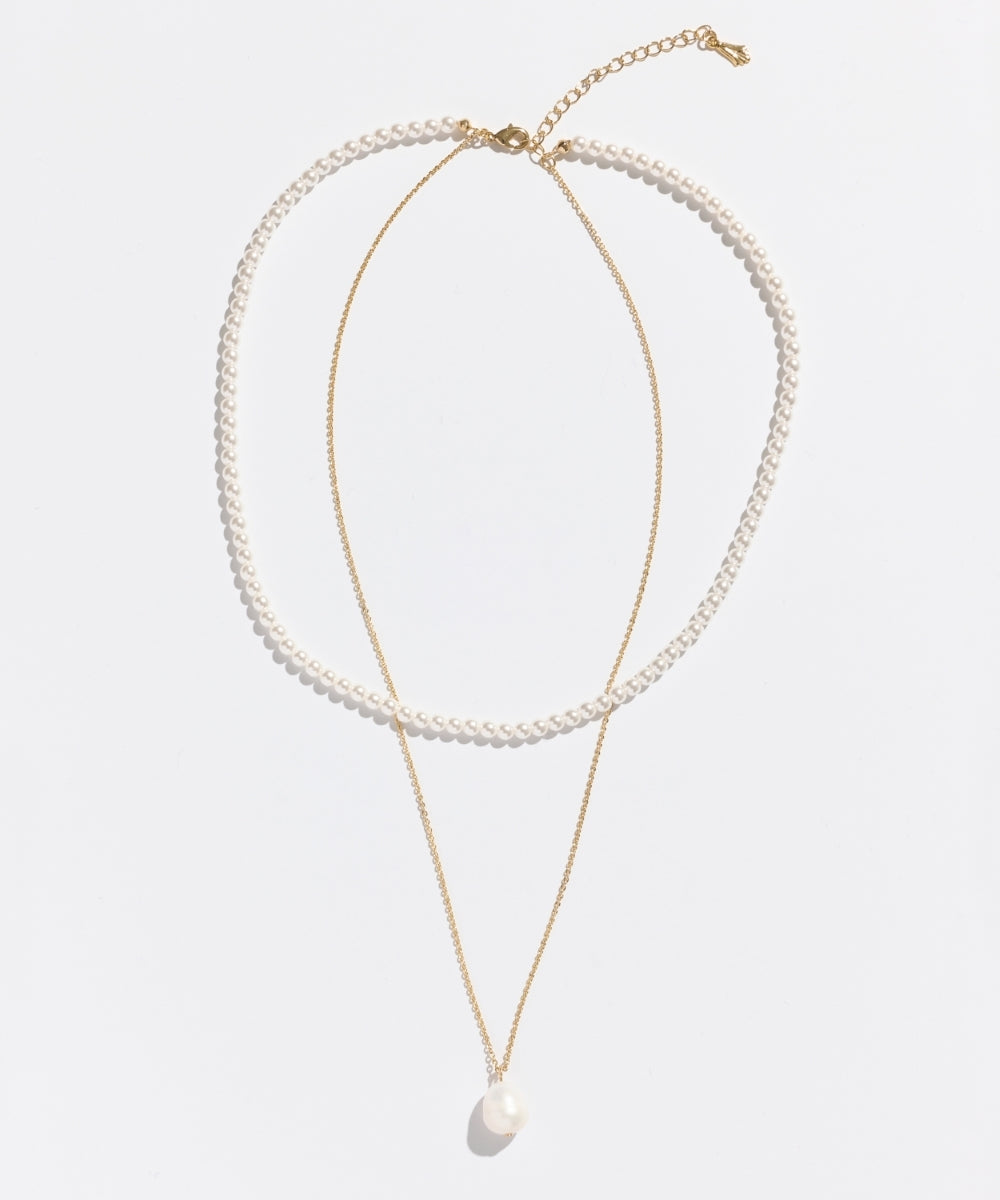 【上品な艶を放つ小粒パールと、淡水パールが美しく調和した2連ネックレス】
