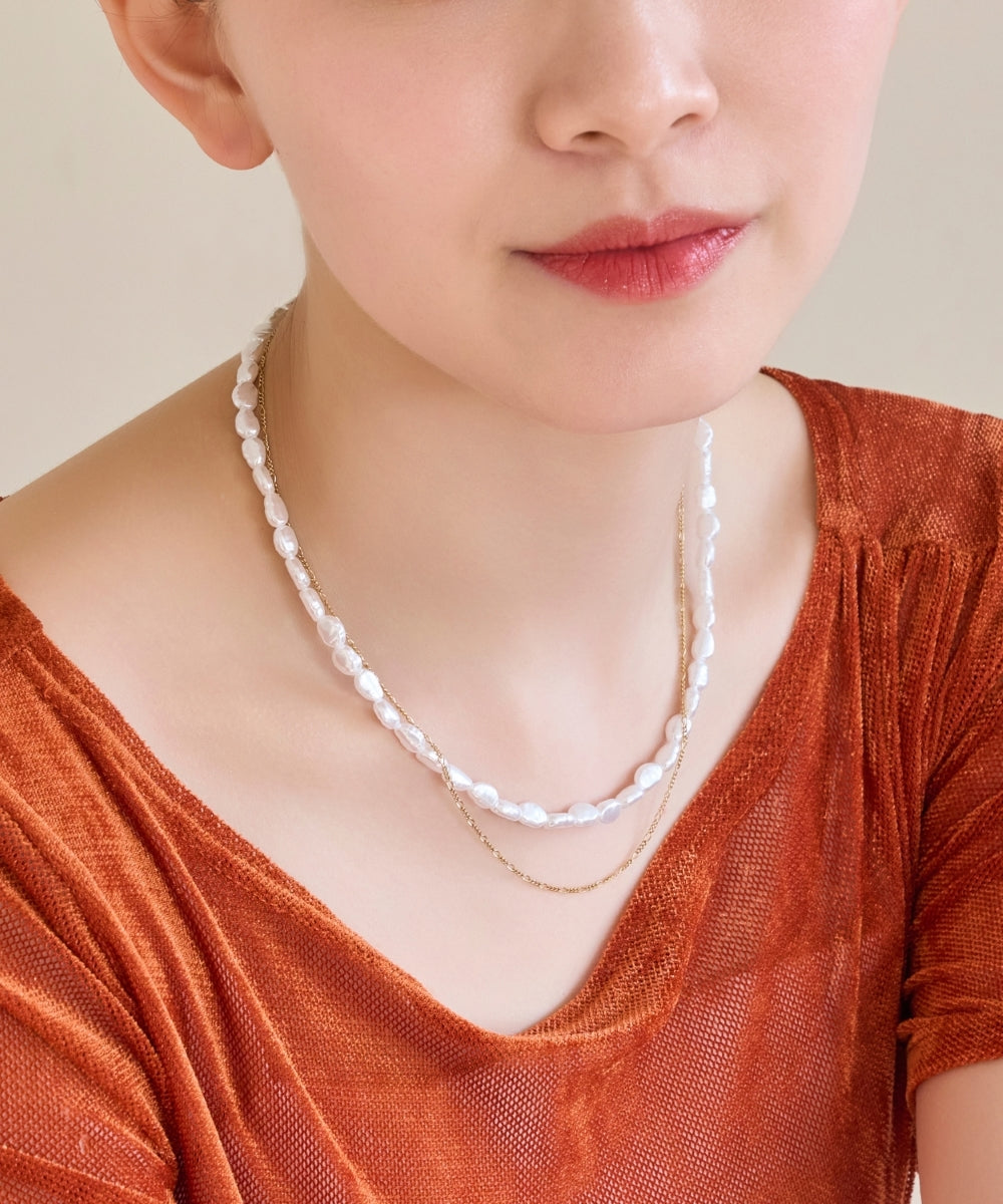 【金属アレルギー対応】クラシカルパール×チェーン2連ネックレス