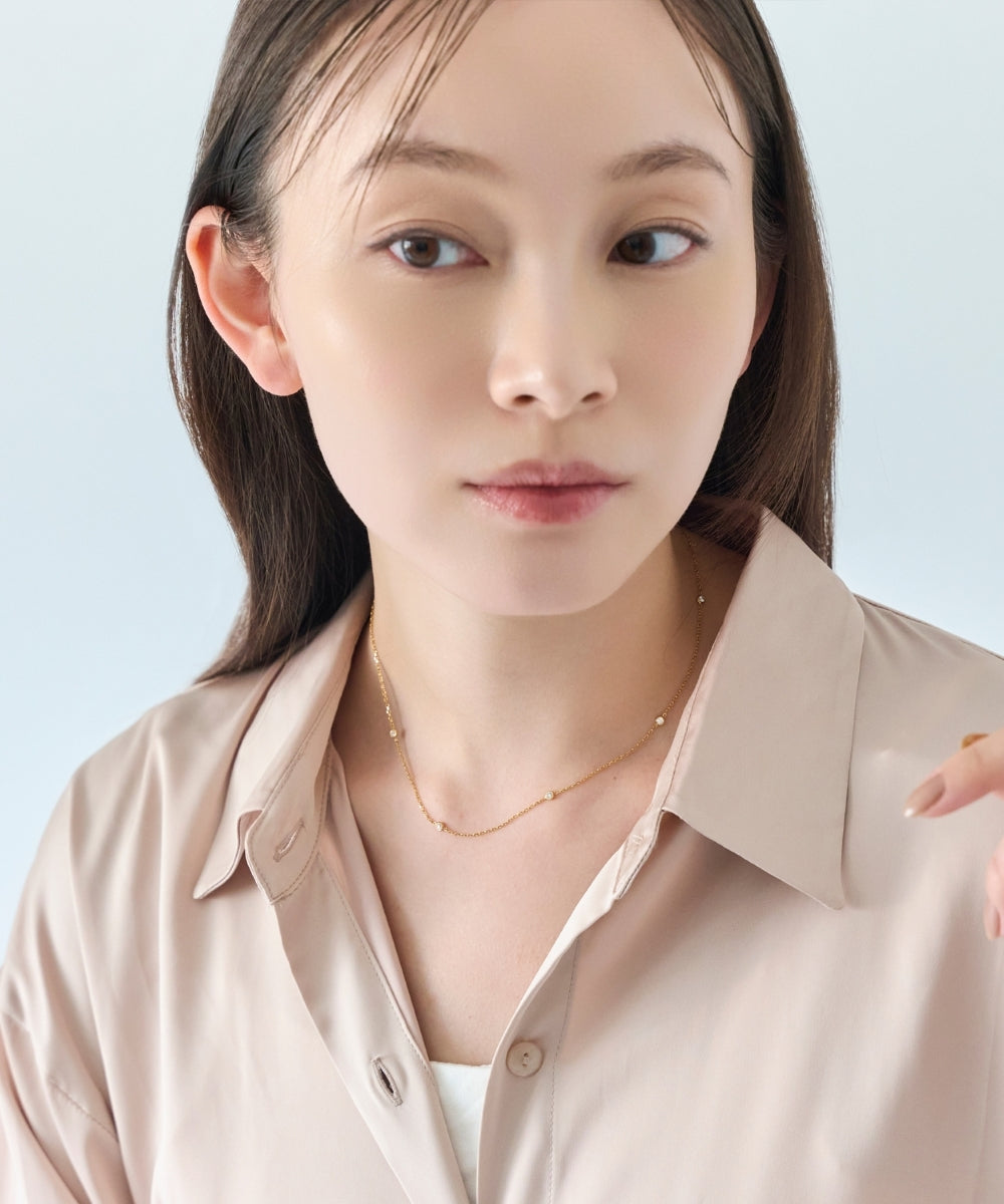 チョーカーならではのフィット感が、洗練された女性らしさを引き立てます。