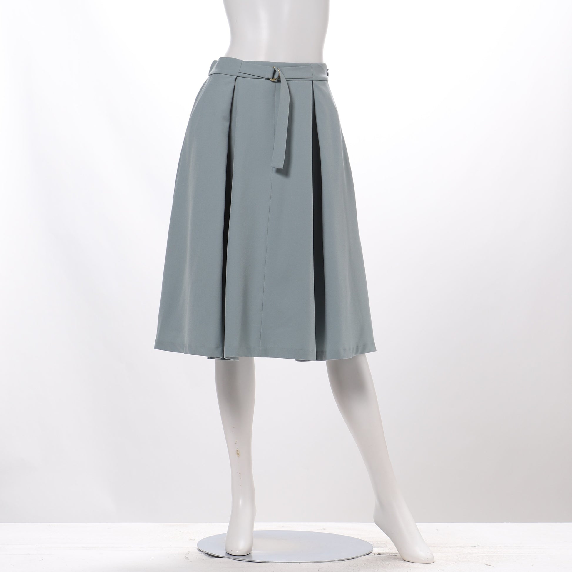 首や鎖骨周りをすっきりと見せてくれるVネックのブラウスとDカンベルト付きのタックフレアスカートを合わせたコンサバスタイルです!