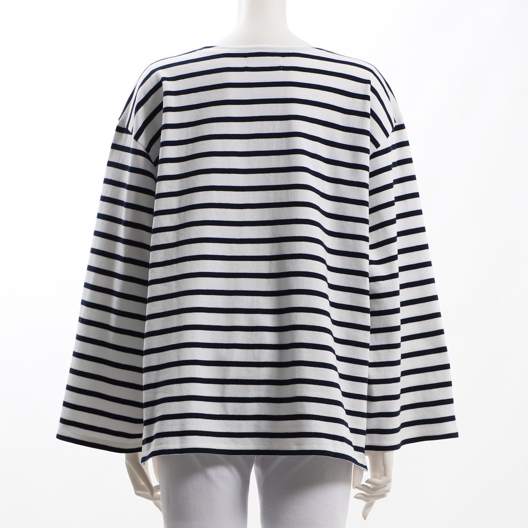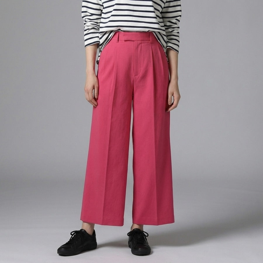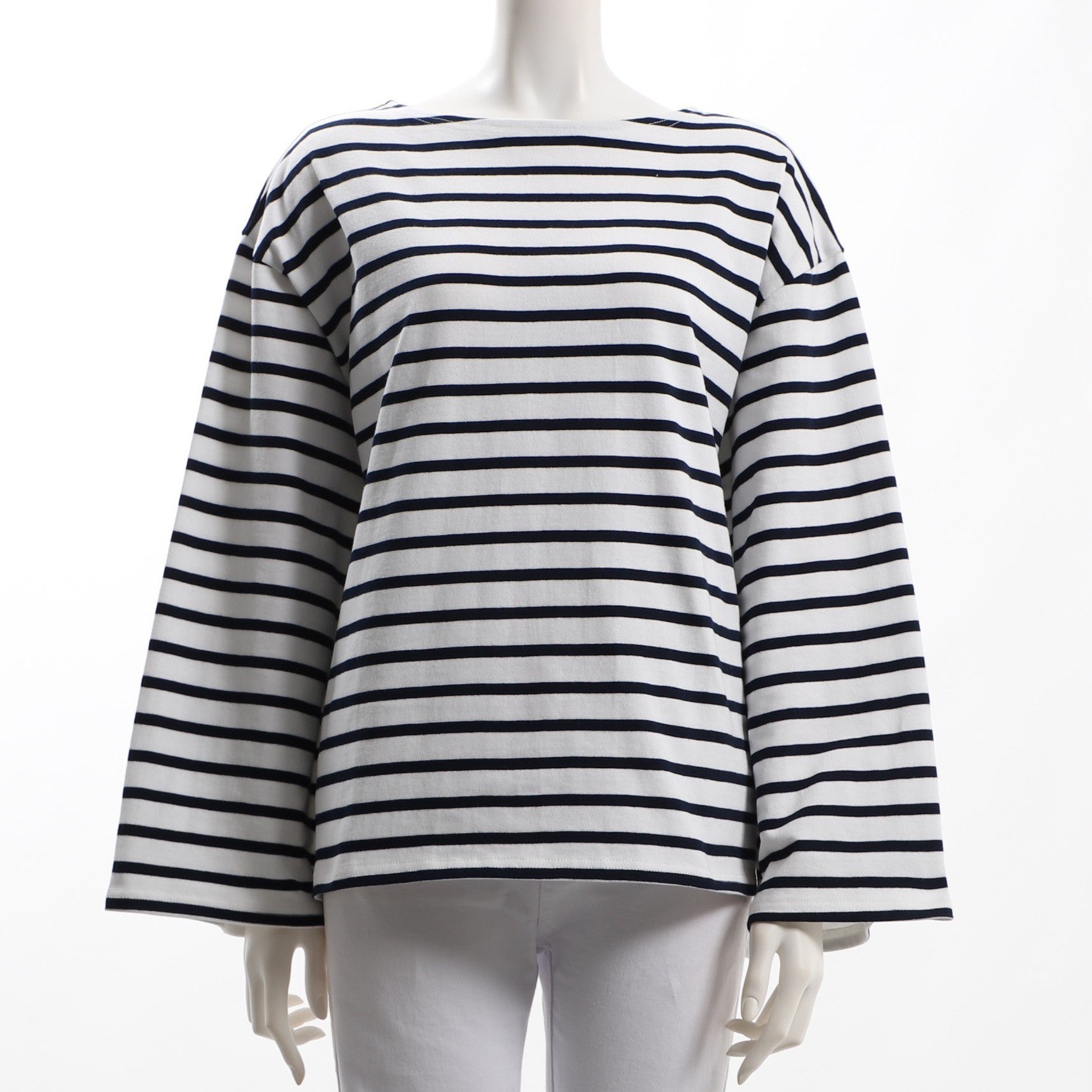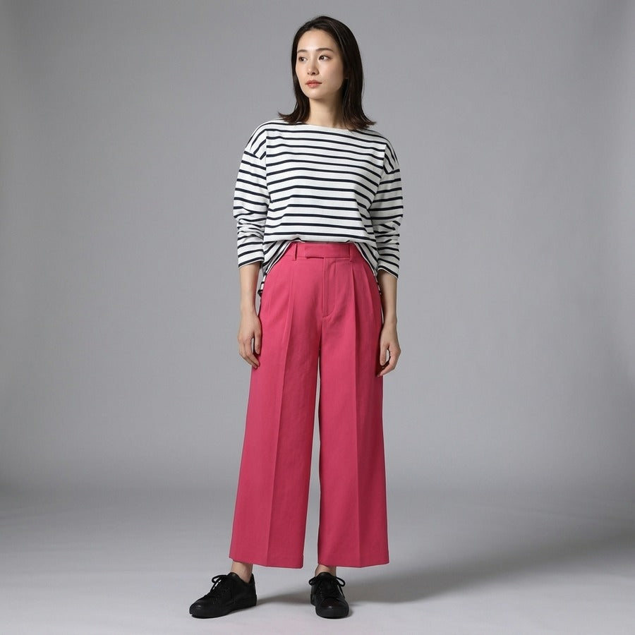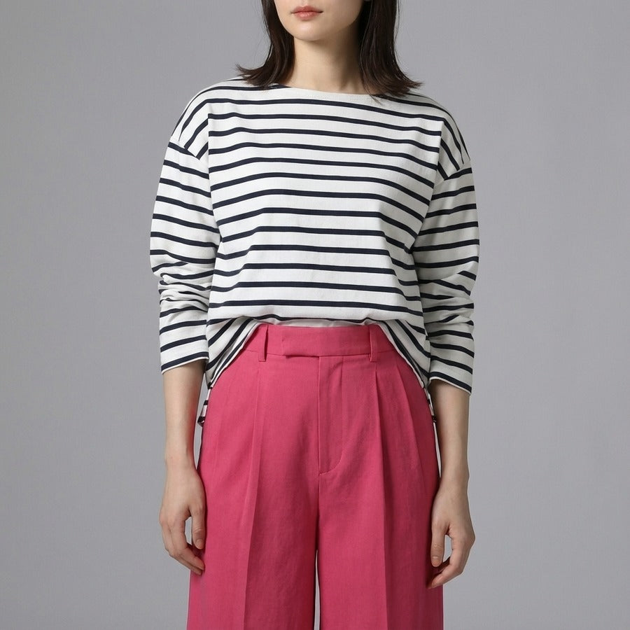 ゆったりとしたお袖が特徴のボーダー柄のカットソーとタック入りワイドパンツを合わせたナチュラルラフスタイルです。