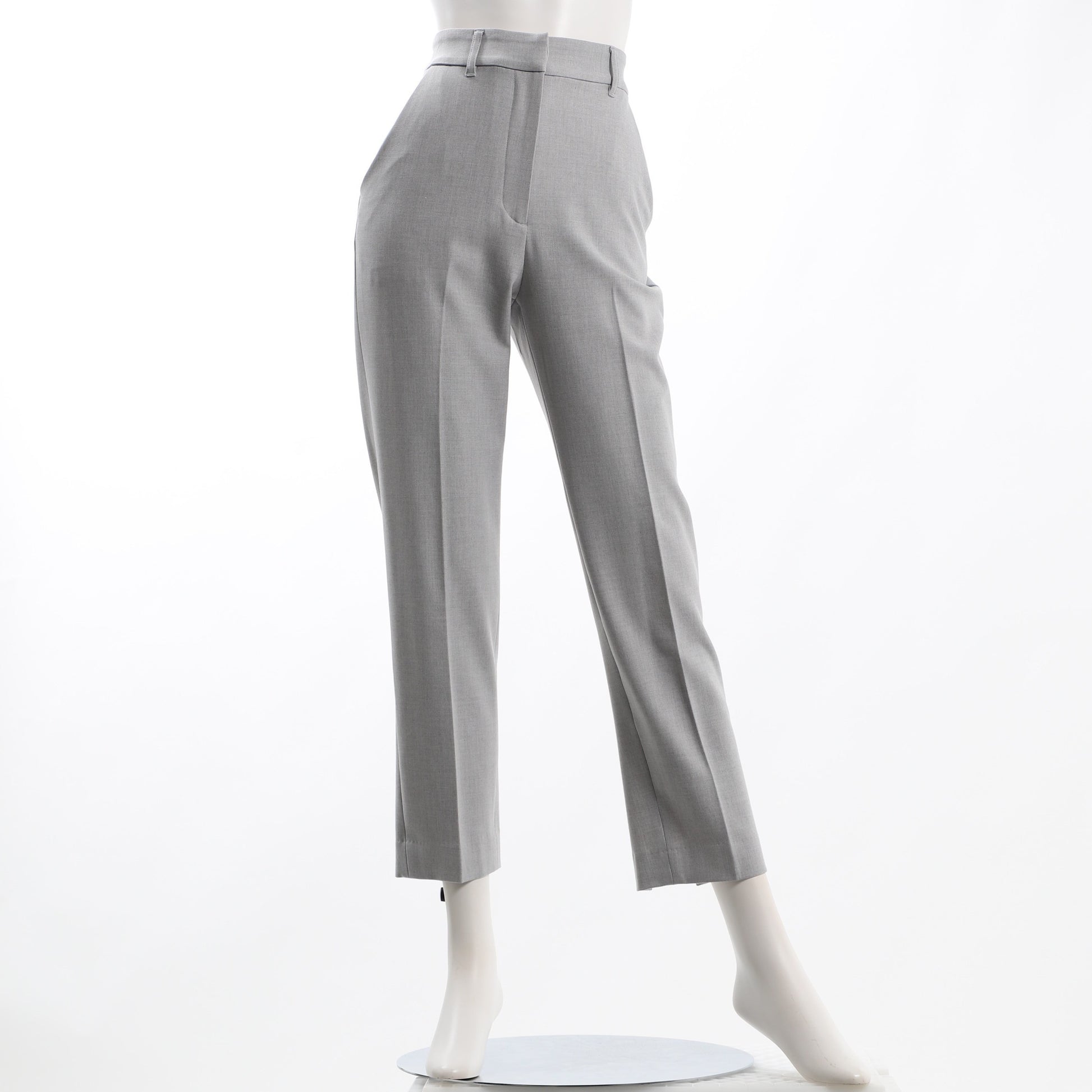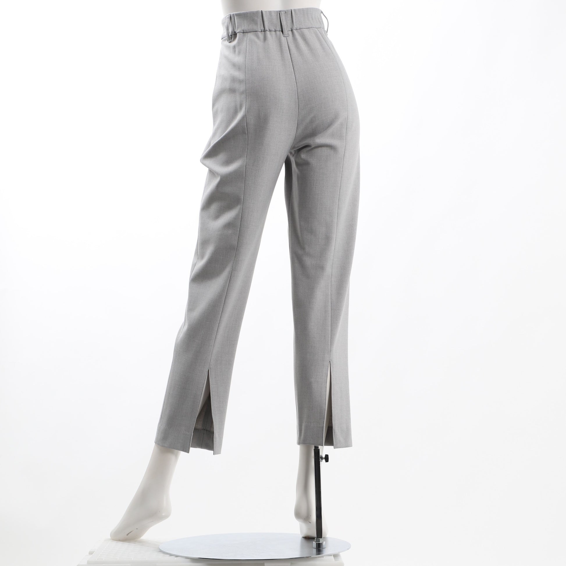 お足元には、ダークグレーのスウェードパンプスを添えると知的な雰囲気に。