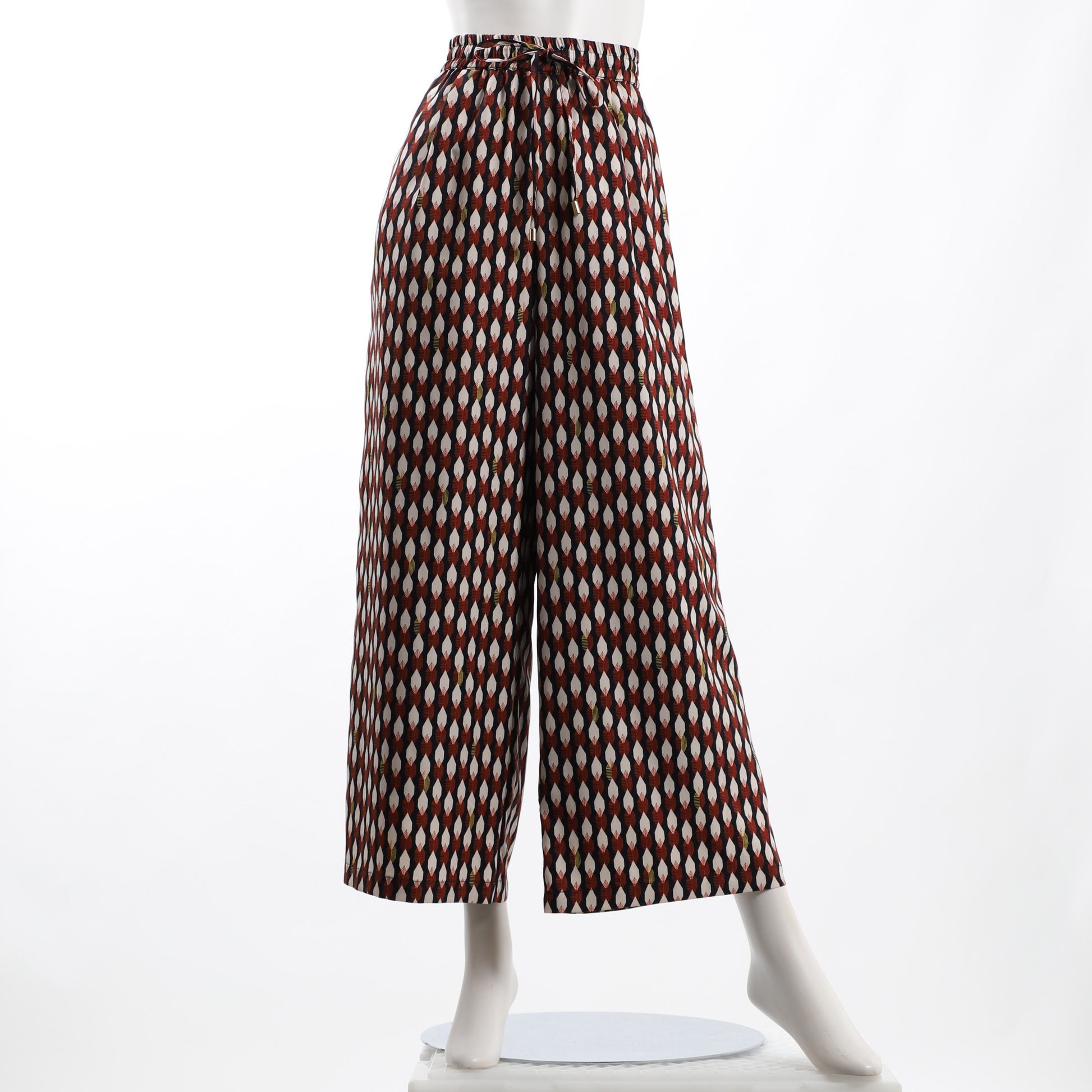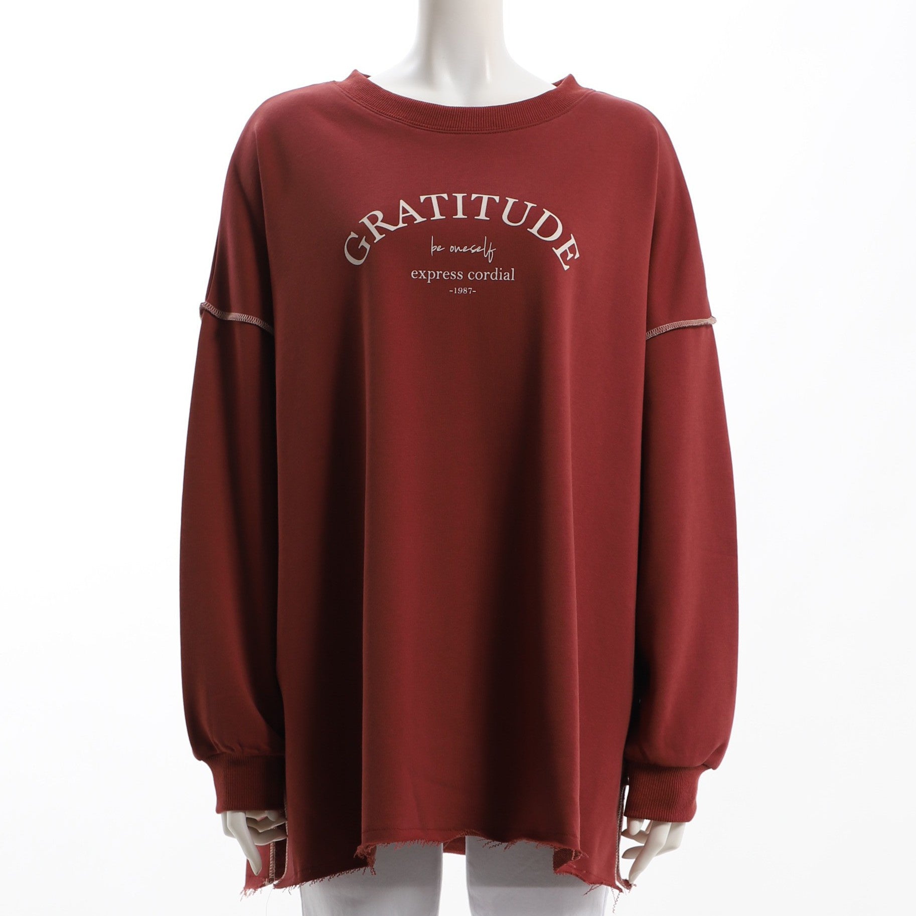 胸元のロゴデザインがポイントのスウェットと総柄のドロストワイドパンツを合わせたカジュアルスタイルです!
