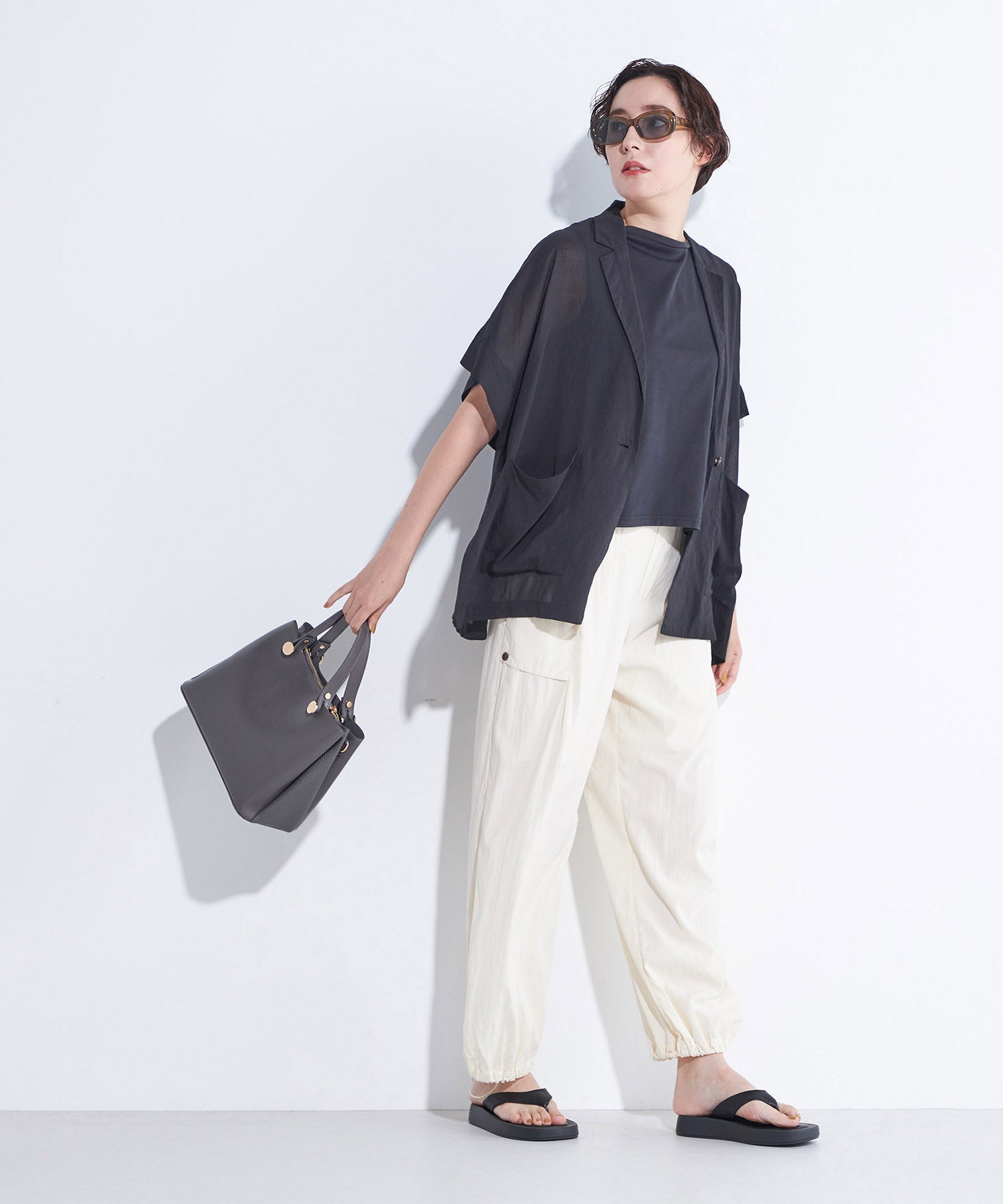 角ばったフォルムで顔まわりが引き締まり、シンプルコーデも一気に洗練された印象になります。