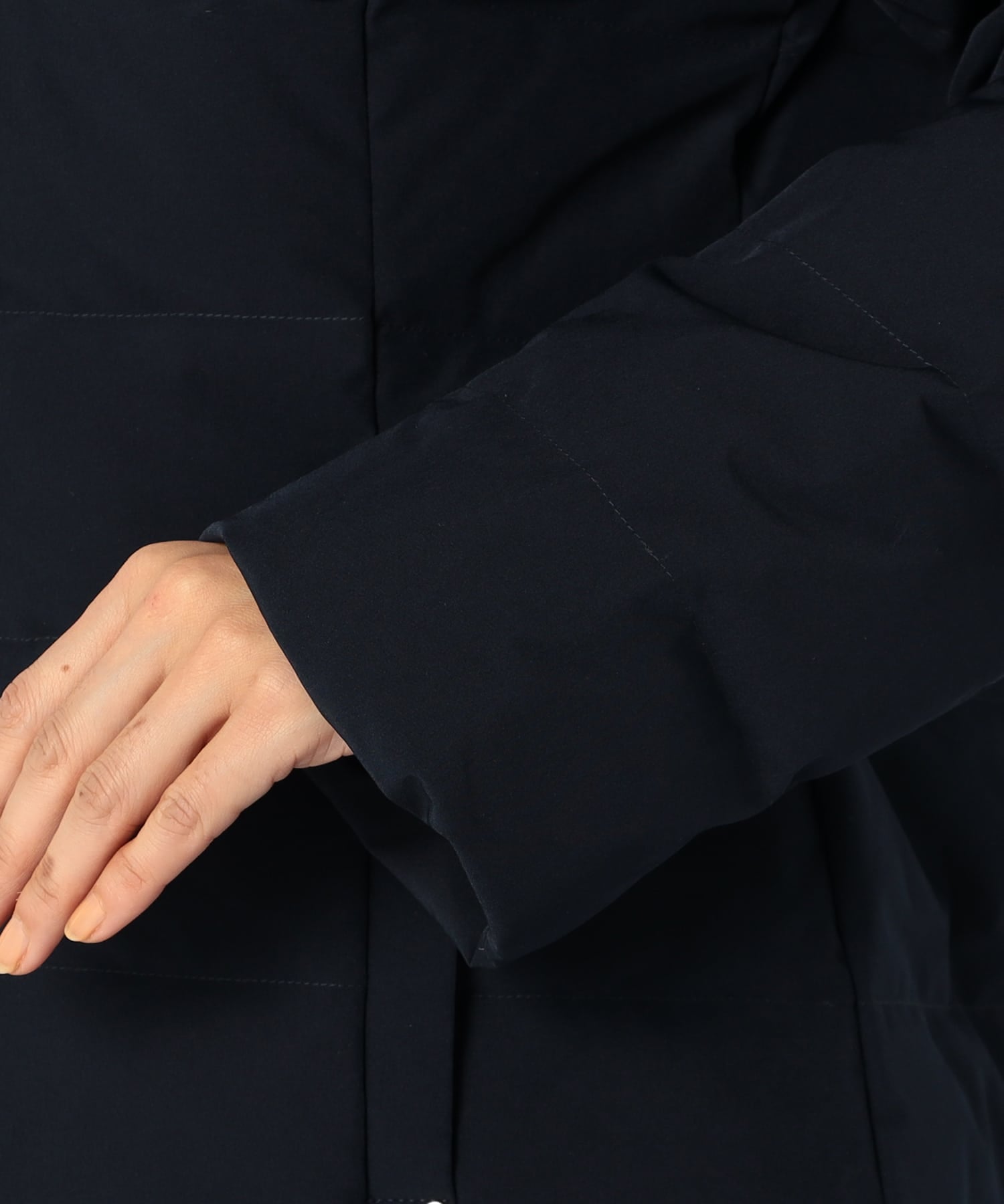 フードはボリュームがあり、首元をしっかりと保温しつつ、洗練された印象を与えます。