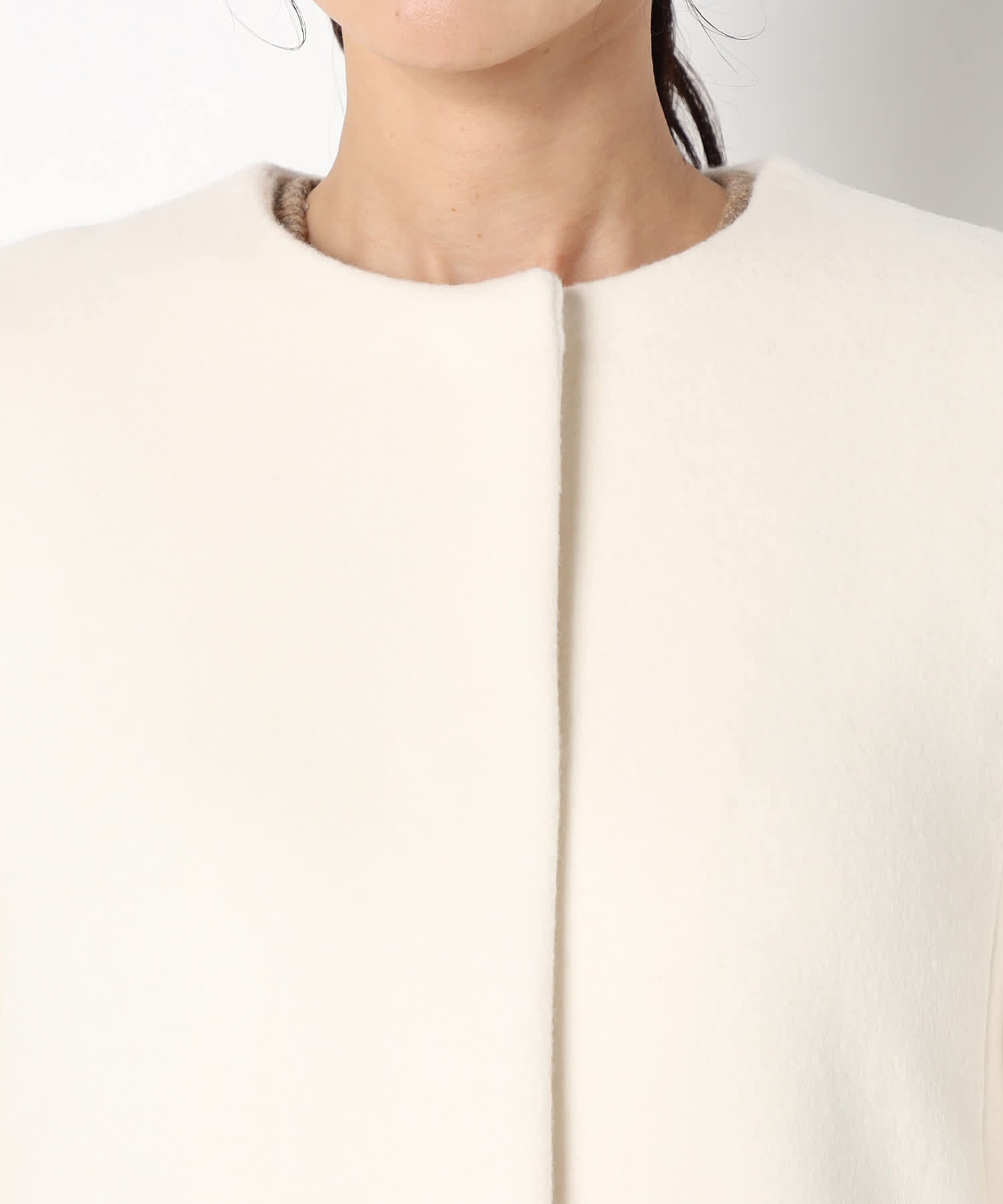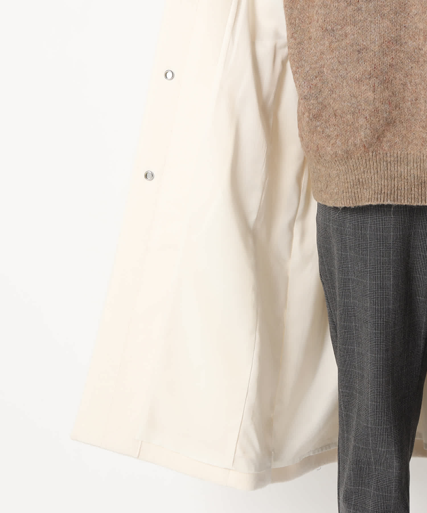 フロントはボタンで留める仕様になっており、すっきりとしたシルエットを演出します。