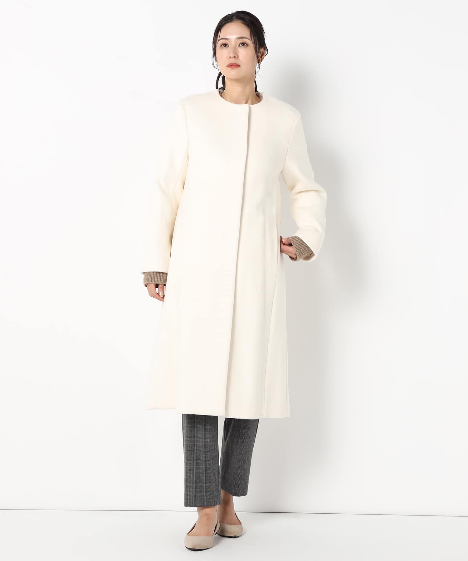 シンプルでありながらエレガントな印象を与え、様々なスタイルにマッチする万能な一着です。